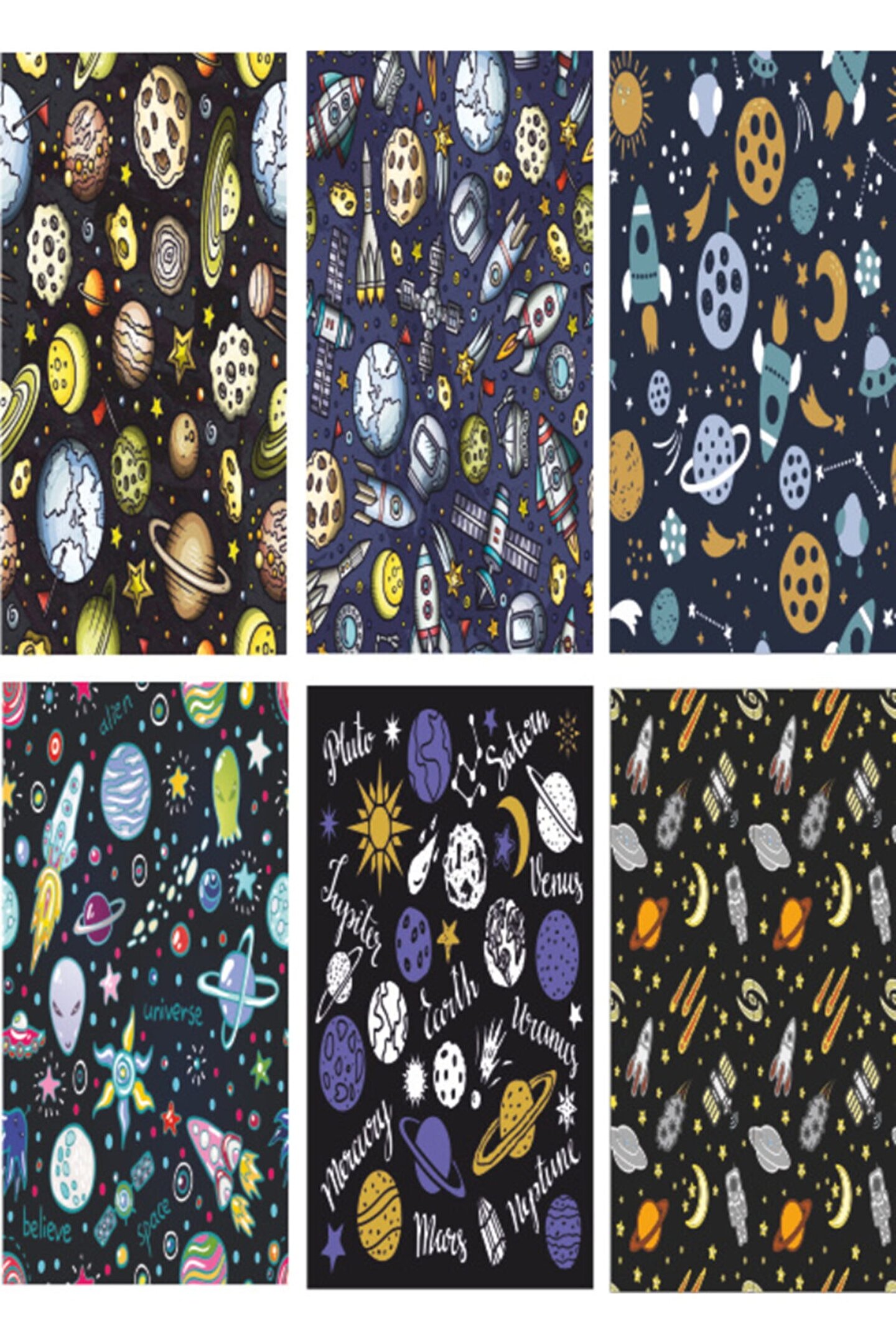 Hayat Poster Uzay Desen 6lı Mini Retro Ahşap Poster Seti (uv Baskı)