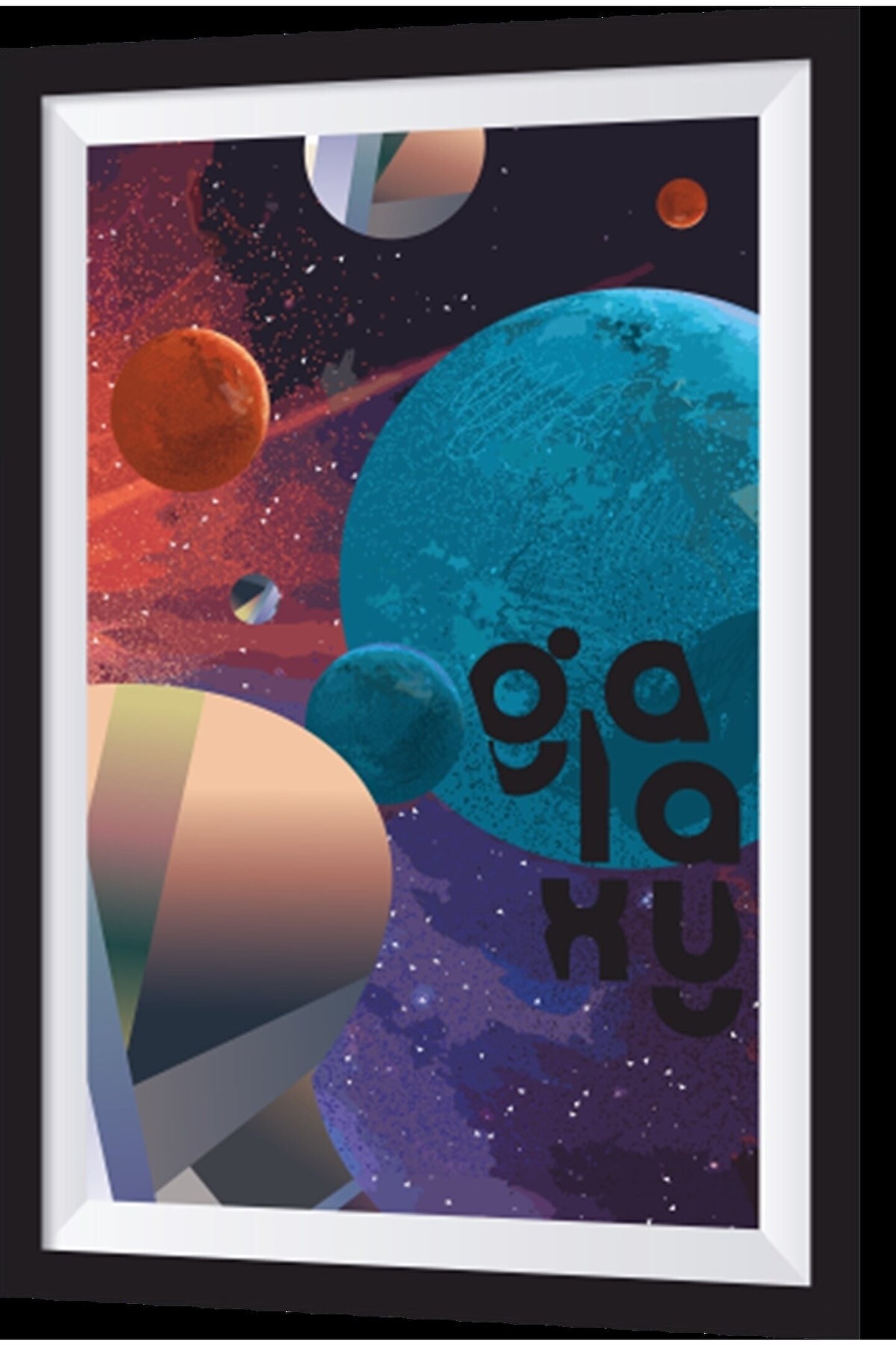 Hayat Poster Uzay Galaksi Sanatsal Çerçeve Görünümlü Ahşap Tablo