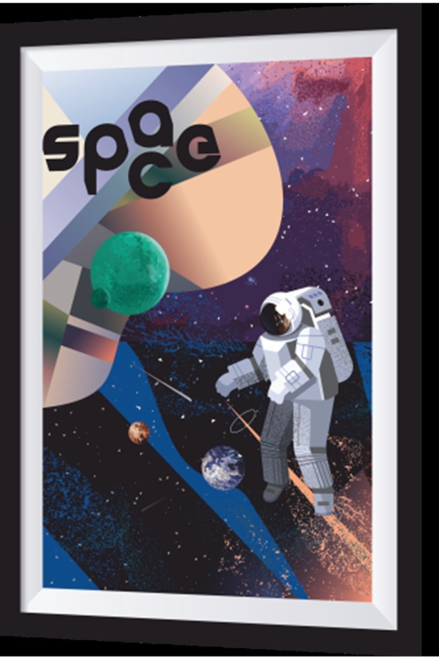 Hayat Poster Uzay Ve Astronot Sanatsal Çerçeve Görünümlü Ahşap Tablo