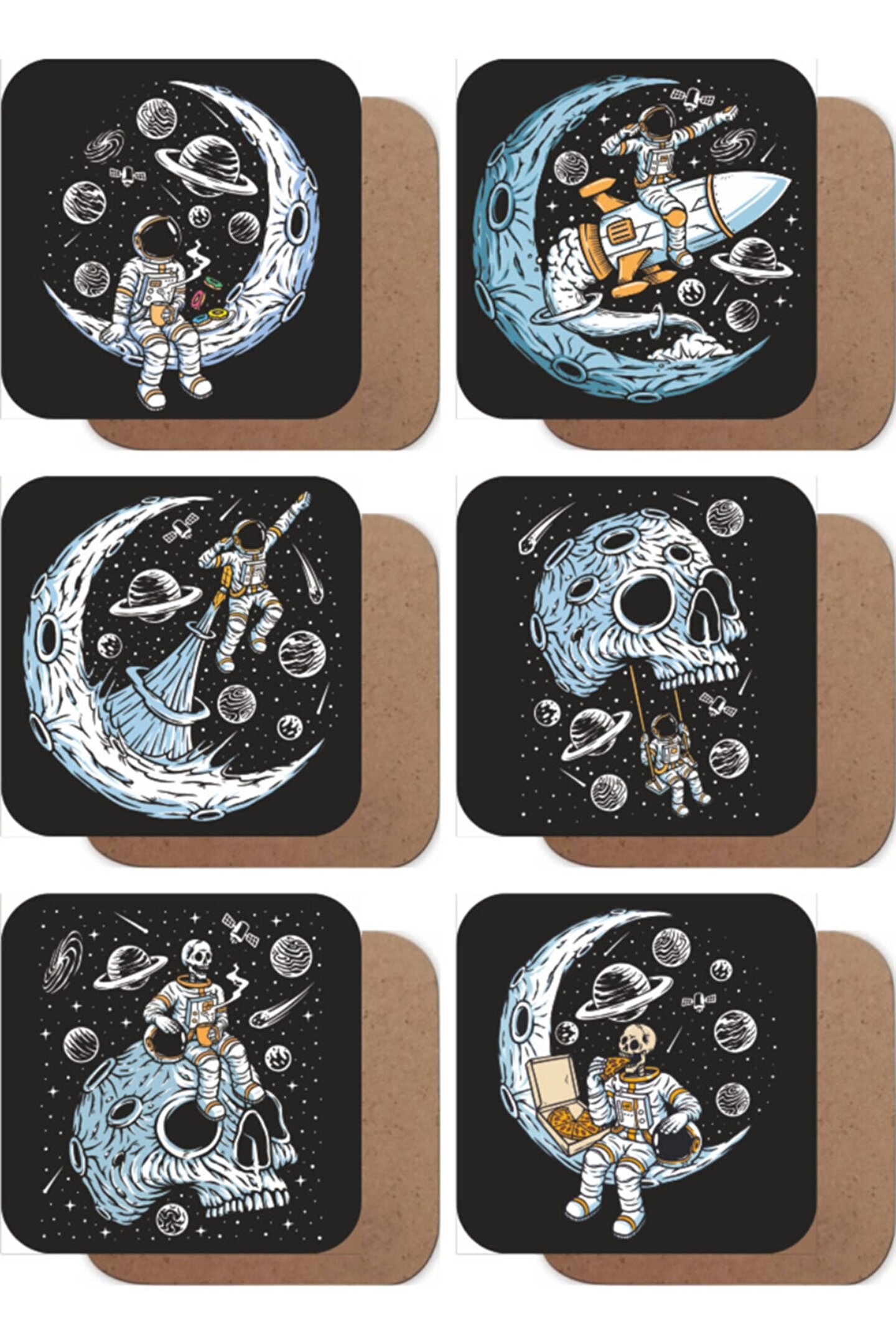 Doğal ahşap malzemesiyle üretilmiş, dayanıklı ve uzun ömürlü kullanım sunar; Her bir bardak altlığı, masanızda şık ve estetik bir görünüm sağlar; Yalnız astronot temalı tasarımıyla mutfak dekorasyonunuza özgün bir dokunuş katar; 6 adet bardak altlığı seti, birden fazla bardak için pratik bir çözüm sunar; Ahşap yapısı sayesinde sıcak içeceklerinizi güvenle kullanabilirsiniz;