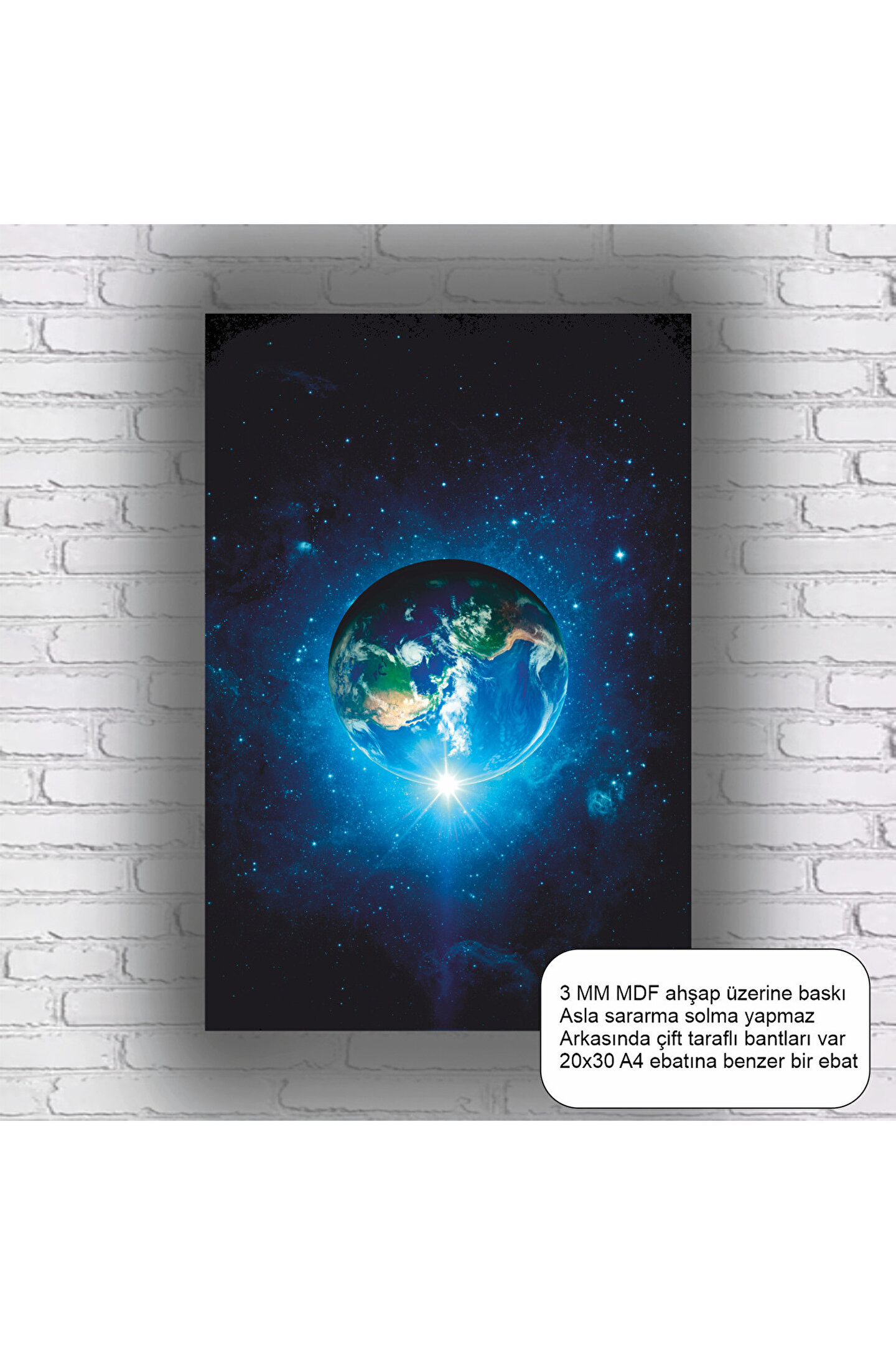 - Uzay temalı tasarımıyla evinizin dekorasyonuna modern bir dokunuş ekler.; - Türkiye menşeli, kaliteli işçilikle üretilmiş bir üründür.; - Çerçevesiz yapısı sayesinde, istediğiniz çerçeve ile kolayca uyum sağlar.; - MDF materyali sayesinde uzun ömürlü ve dayanıklı kullanım sunar.;