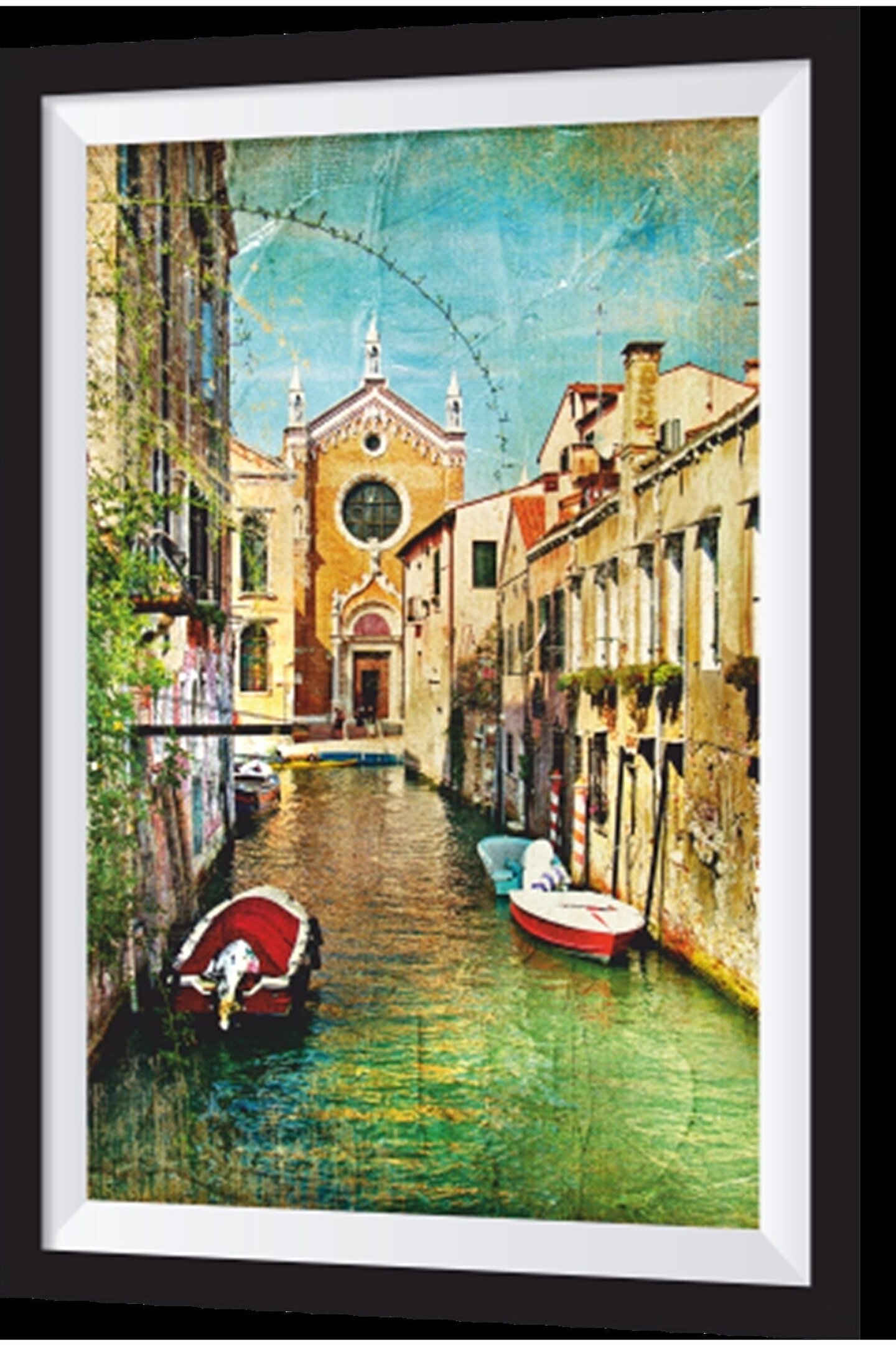Hayat Poster Venedik Kayık Sanatsal Çerçeve Görünümlü Ahşap Tablo