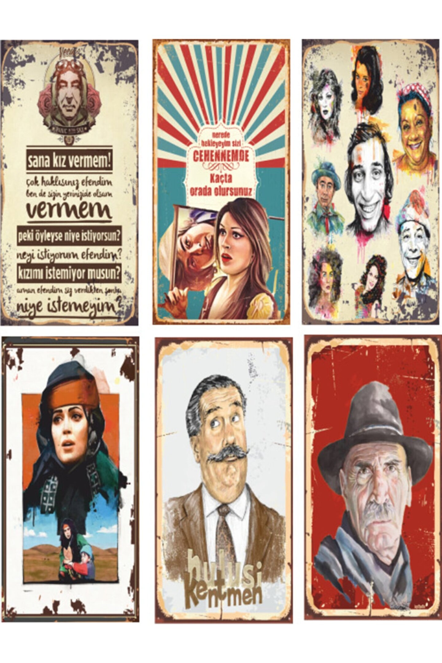 Hayat Poster Yeşilçam Türk Sineması 6lı Ahşap Poster Seti