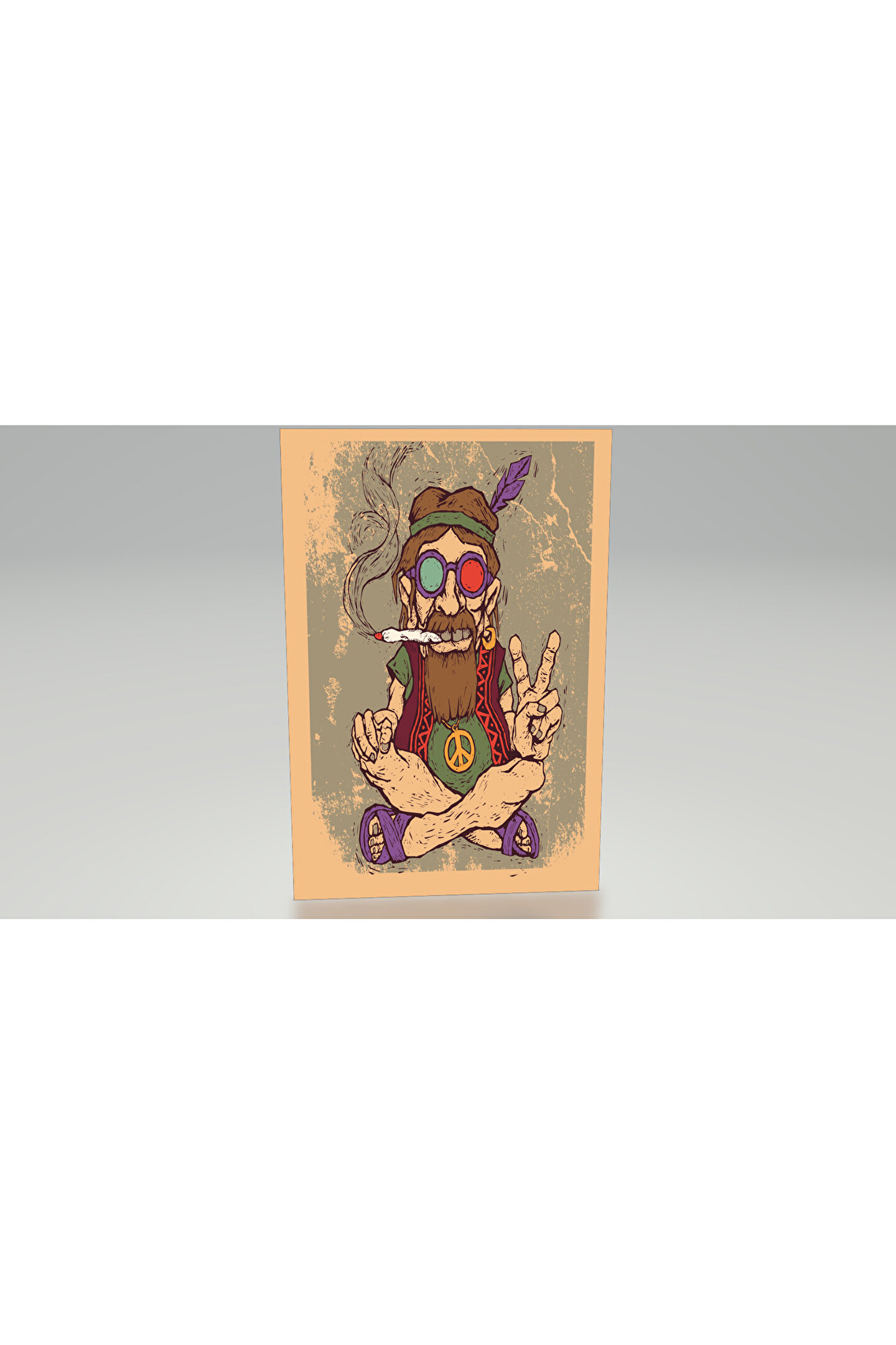 Hayat Poster zafer barış işareti yapan hippi baba bohem retro ahşap poster