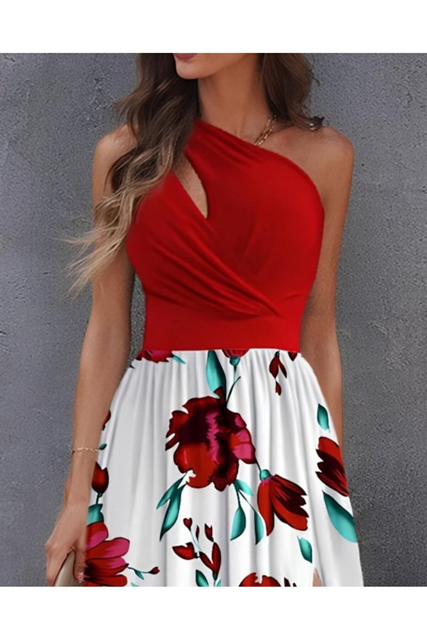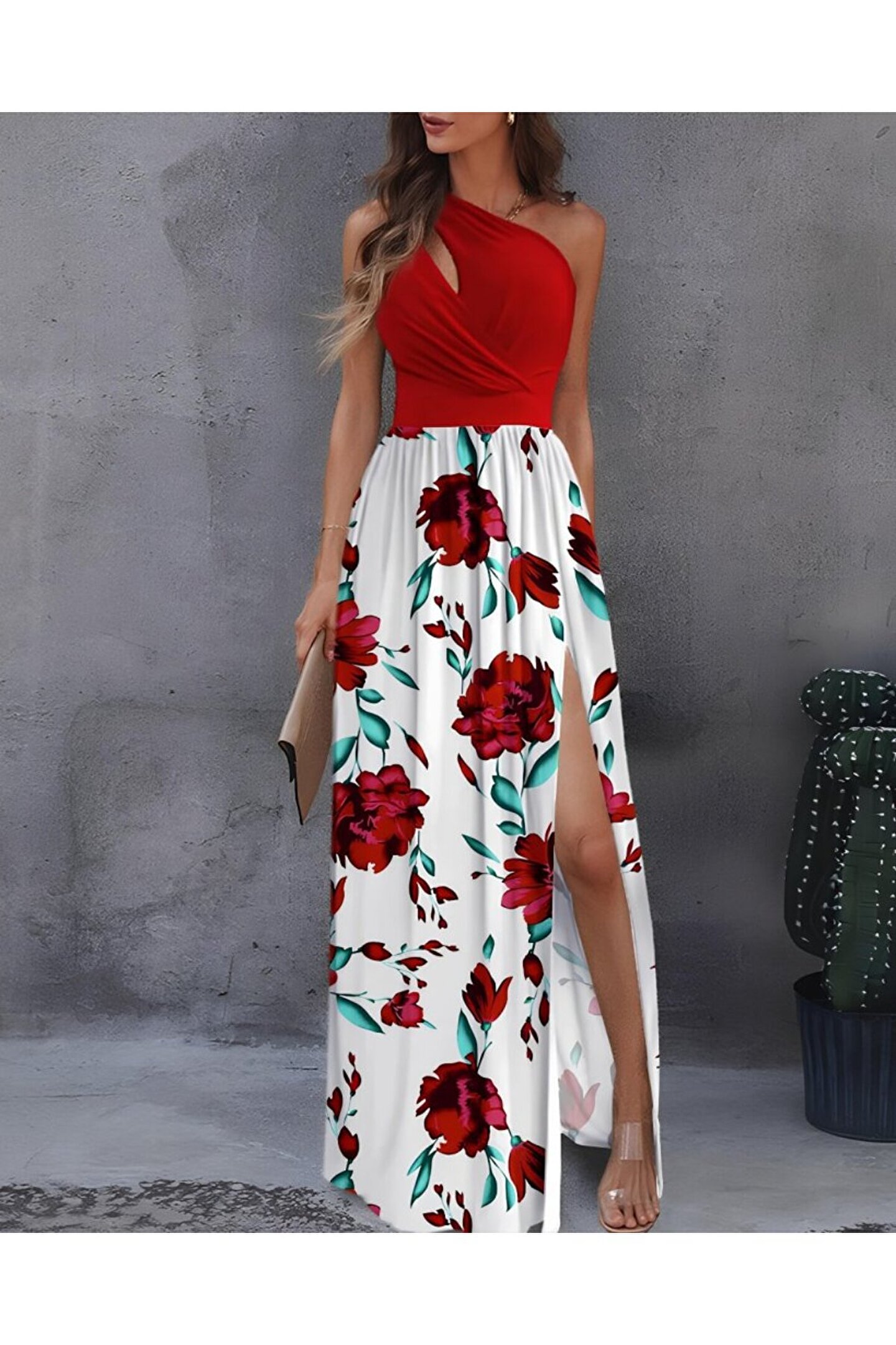 HAZEGO EQURİ Kadın Tek Omuzdan Askılı Damla Detaylı üst Dalgıç Alt Süprem Maxi Elbise