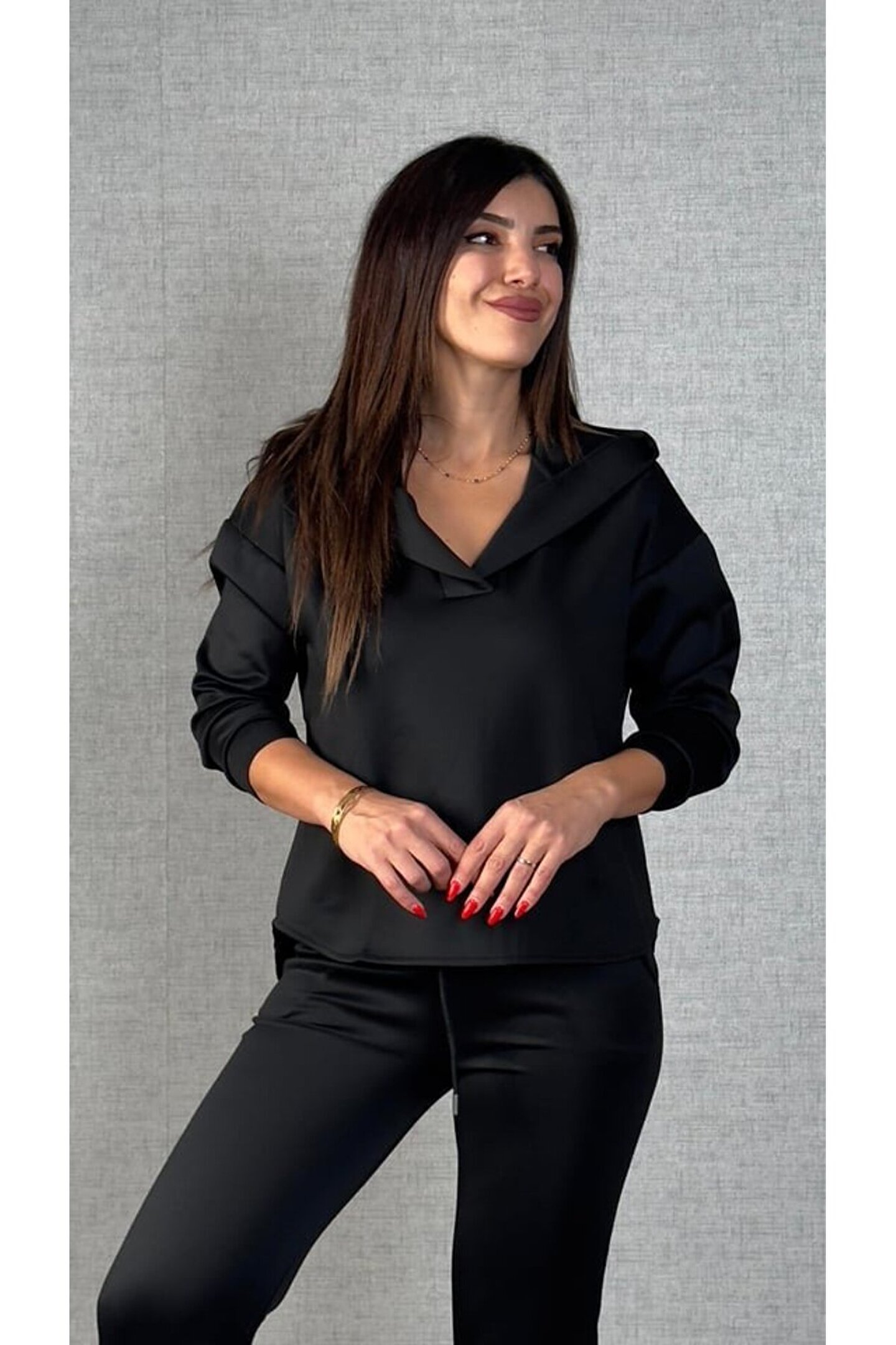 Kadın Uzun Kollu Kapüşonlu Ikili Takım