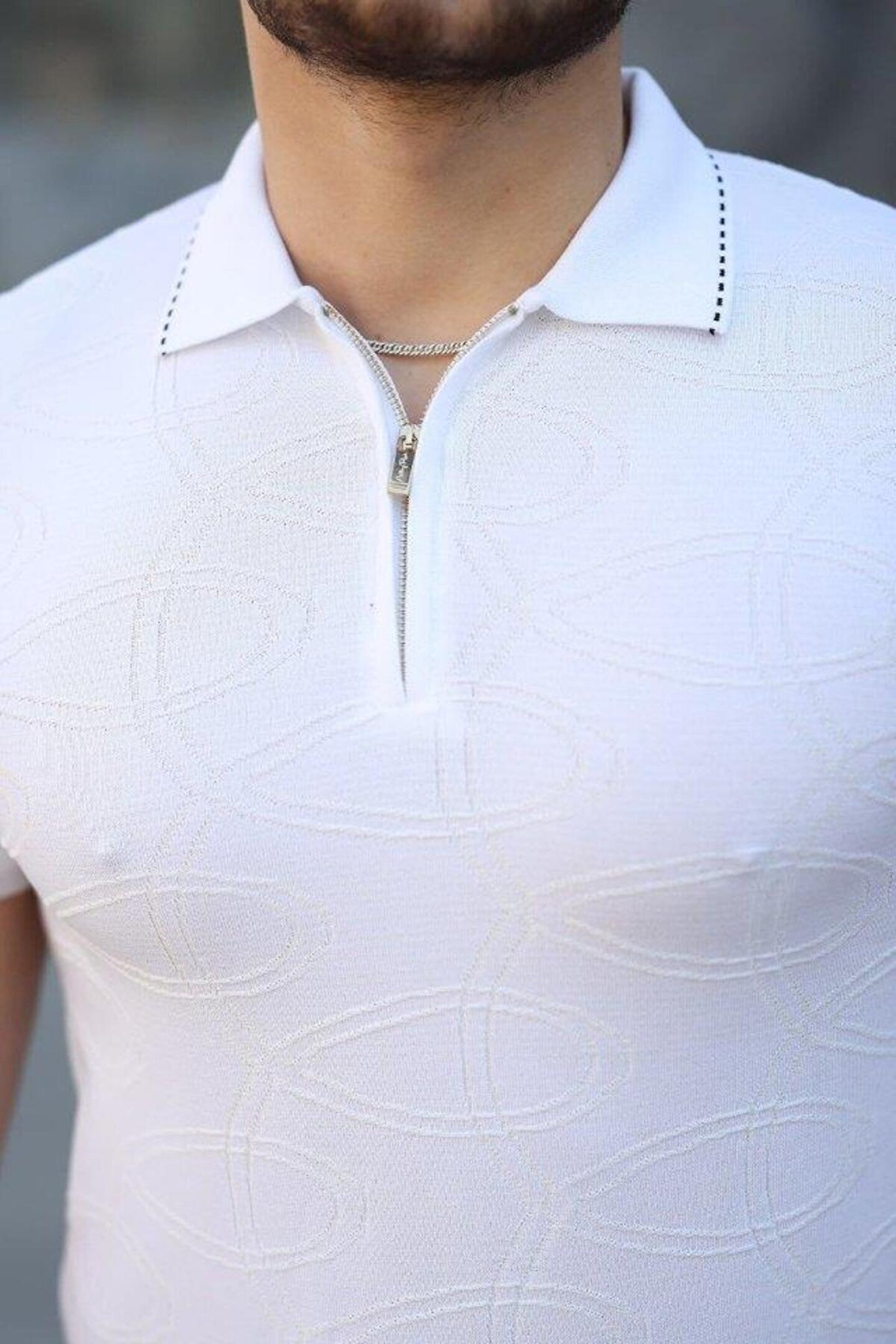 Erkek Viskon Kumaş Polo Yaka Desenli Tişört