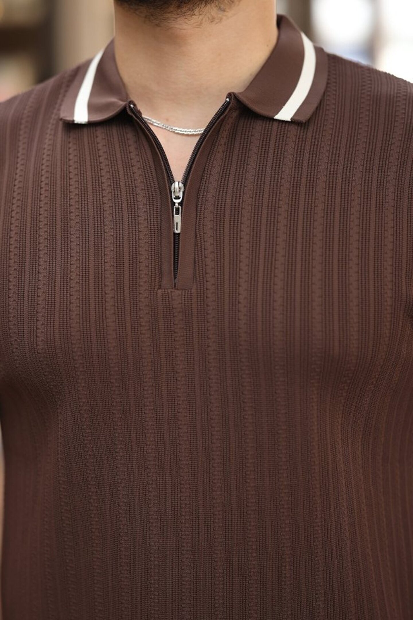 Erkek Yaka Ve Kolları çizgi Detaylı Fermuarlı Kısa Kollu T-shirt