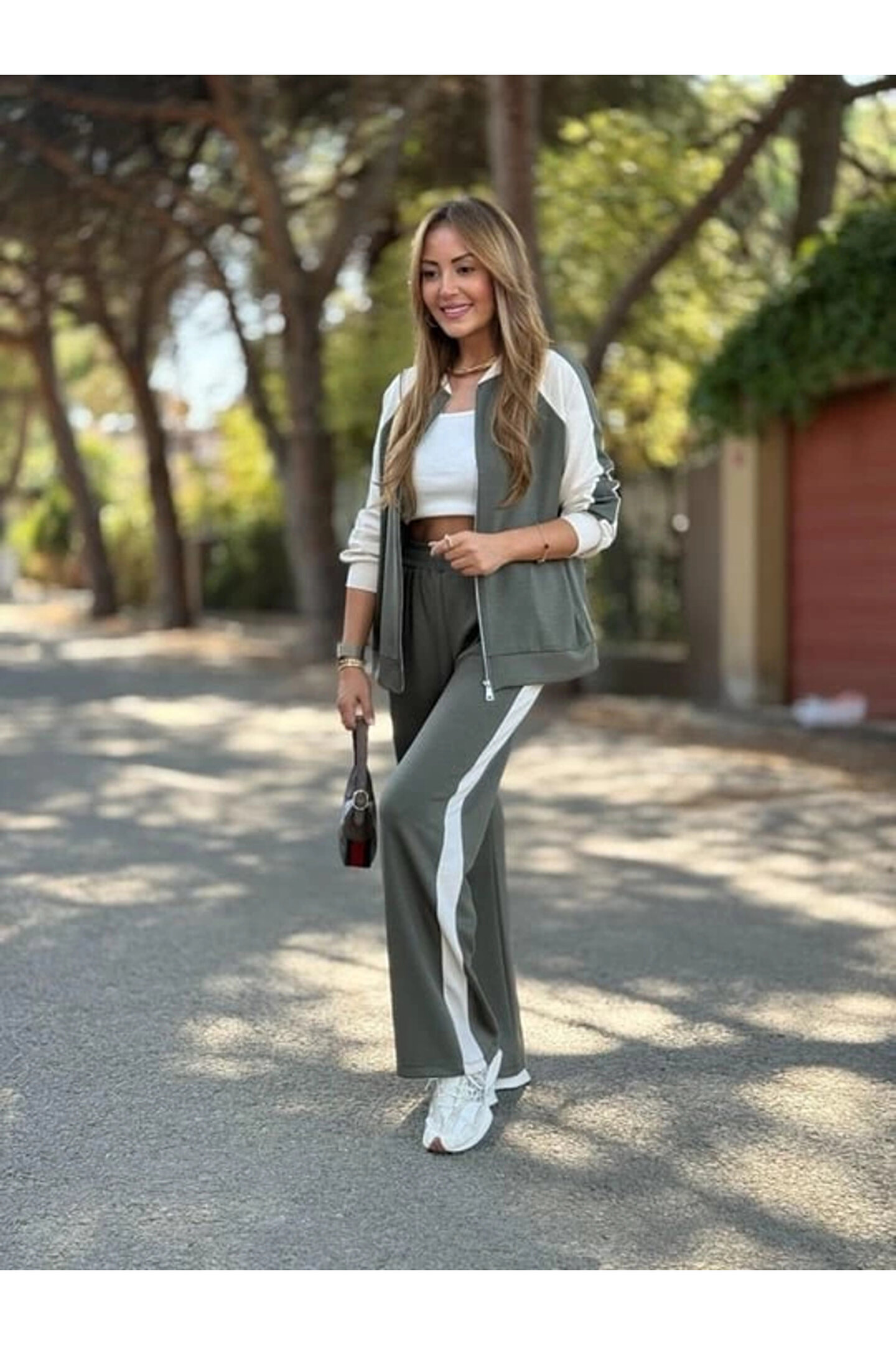 HAZEGO Kadın Hakim Yaka şerit Detay Hırka Ve Bol Paça Pantolon Ikili Takım