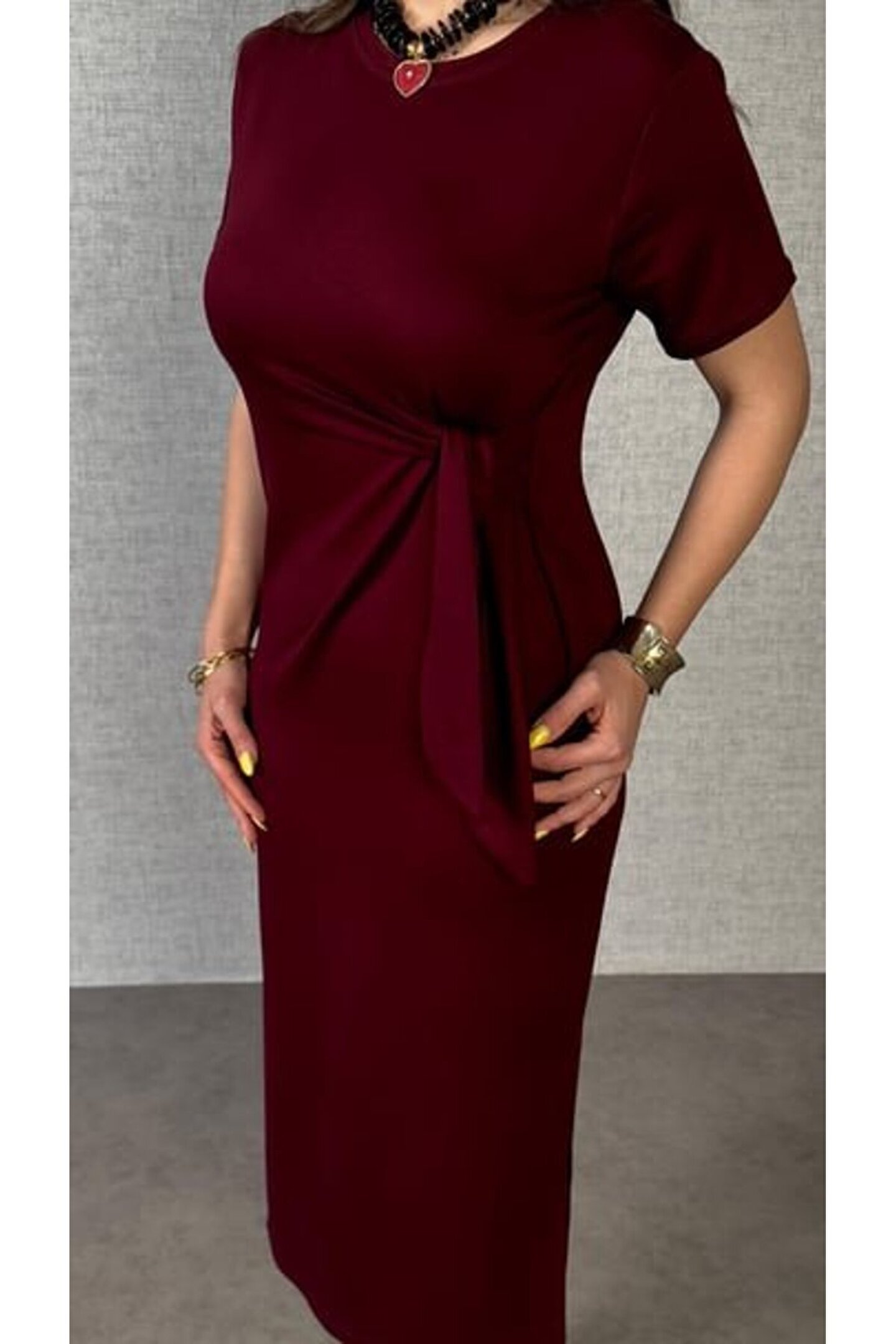 Kadın Kısa Kollu Bisiklet Yaka Yandan Bağlamalı Viskon Iki Iplik Elbise