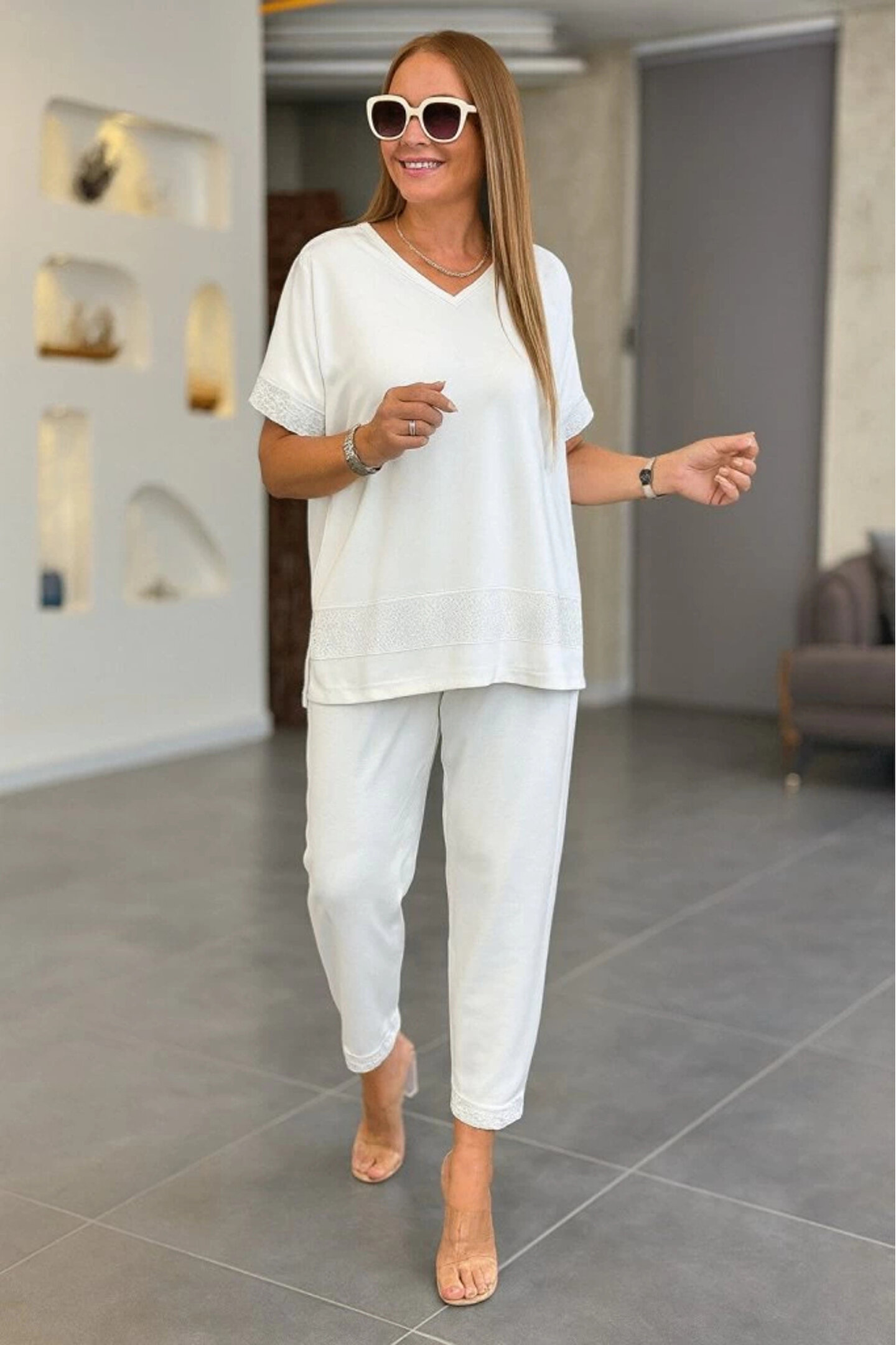 Kadın Kısa Kollu V Yakalı Pul Payetli Viskon Iki Iplik Bluz Ve Pantolon Ikili Takım Viyamoda'ya Hoş Geldiniz! Biz, şıklık arayan kadınların vazgeçilmez adresi Viyamoda olarak müşterilerimize en kaliteli ve şık giyim ürünlerini sunmayı hedefliyoruz.; Her tarza ve zevke uygun koleksiyonlarımızda özel tasarımlar bulabilirsiniz.; Trendleri yakından takip ederek her sezonda yeni ve güncel ürünlerimizle siz değerli müşterilerimize hizmet veriyoruz.; Müşteri memnuniyeti ve güvenilir alışveriş deneyimi bizim için en önemli önceliktir.; Ürünlerimiz sizler için özel ve özenli olarak paketlenip aynı gün kargoya verilmektedir, böylece hızlı ve güvenilir bir alışveriş deneyimi yaşamanızı sağlıyoruz.; Mağazamızda sadece elbise satışı değil, aynı zamanda çeşitli ödeme seçenekleri ve yardımcı hizmetler de sunarak müşterilerimize kusursuz bir alışveriş deneyimi sunuyoruz.; Size özel ve kişiselleştirilmiş hizmetlerimizle her an yanınızdayız.; Viyamoda ailesine katılarak, tarzınızı yansıtan, kaliteli ve şık giyim ürünlerine sahip olabilirsiniz.; Bizimle iletişime geçmekten çekinmeyin, size yardımcı olmaktan mutluluk duyarız! Teşekkür ederiz, Viyamoda