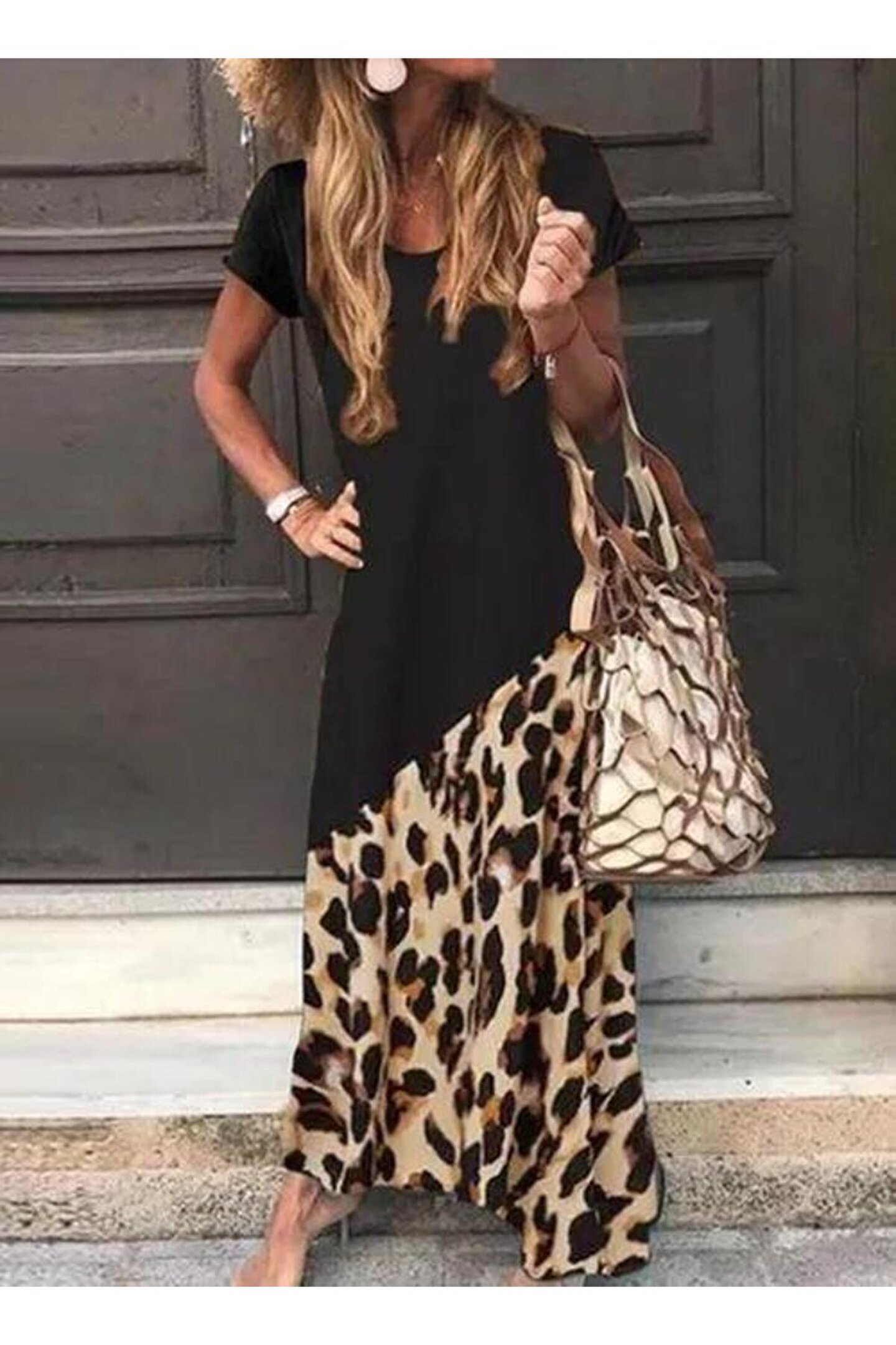Kadın Leopar Garnili, Turlu Viskon Elbise