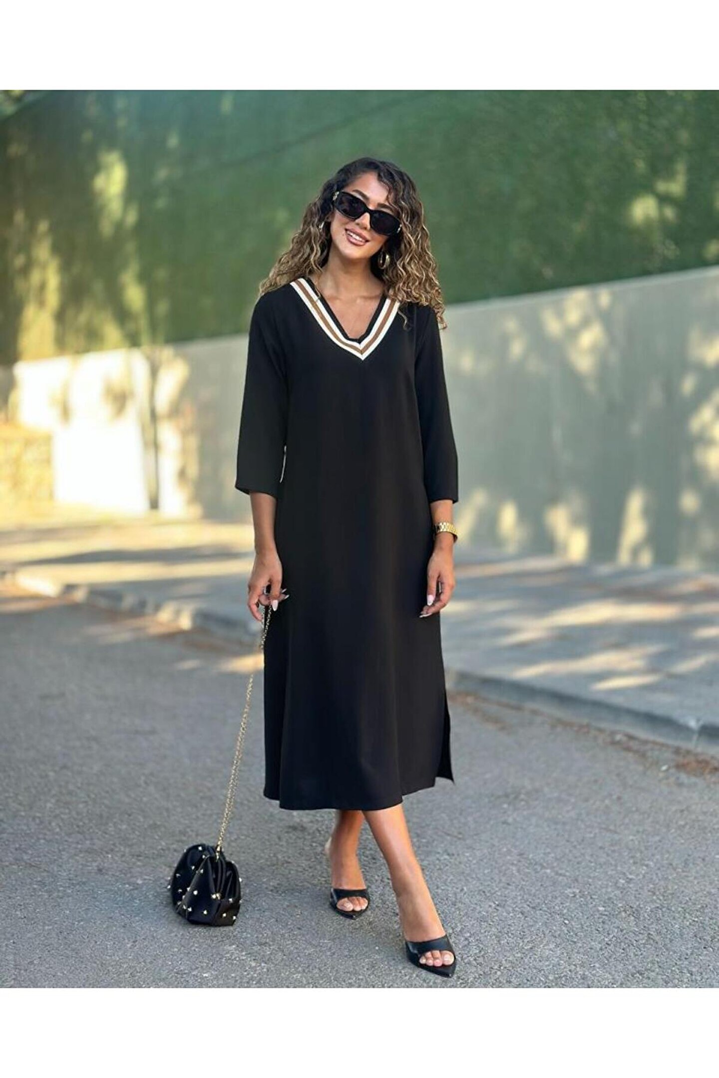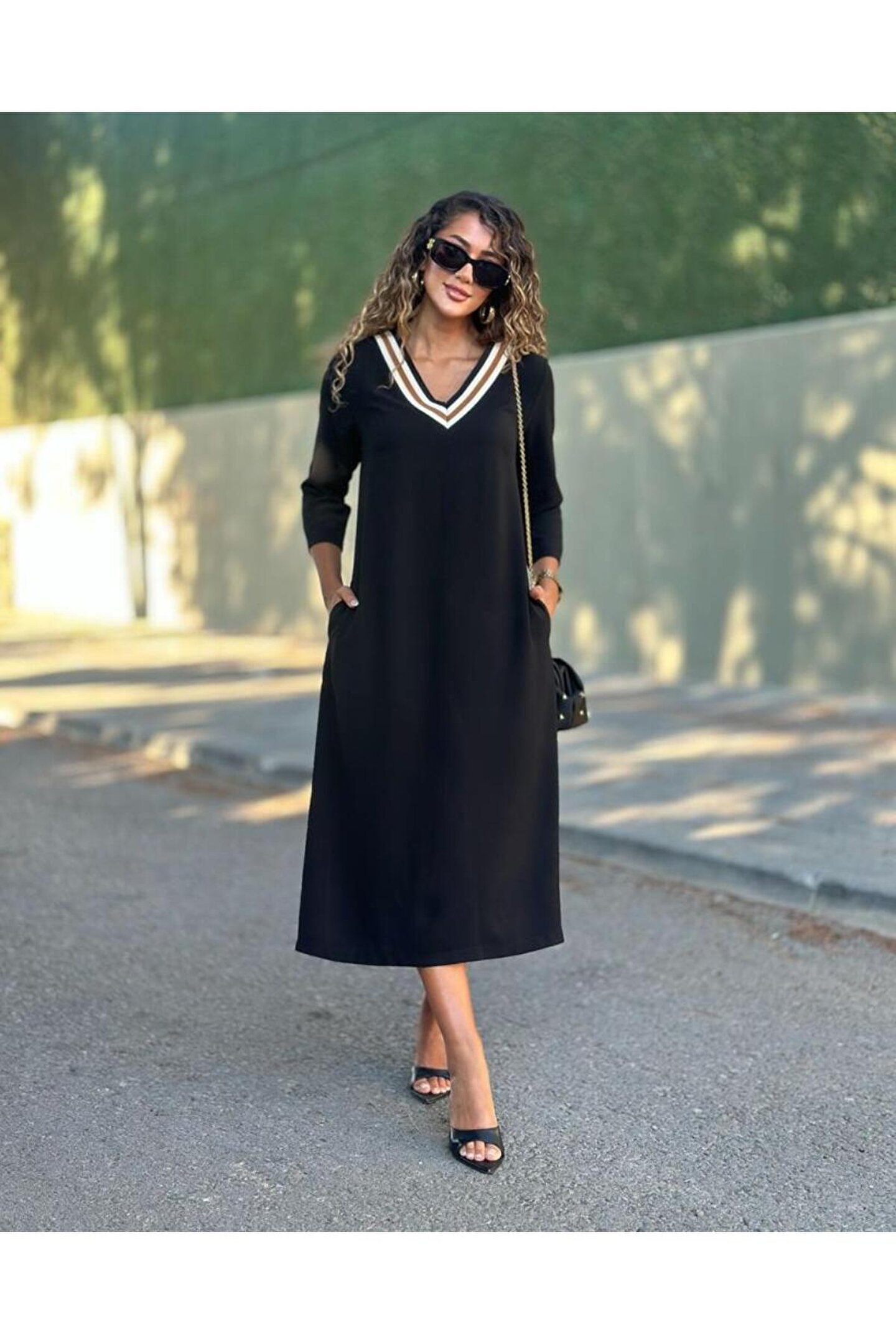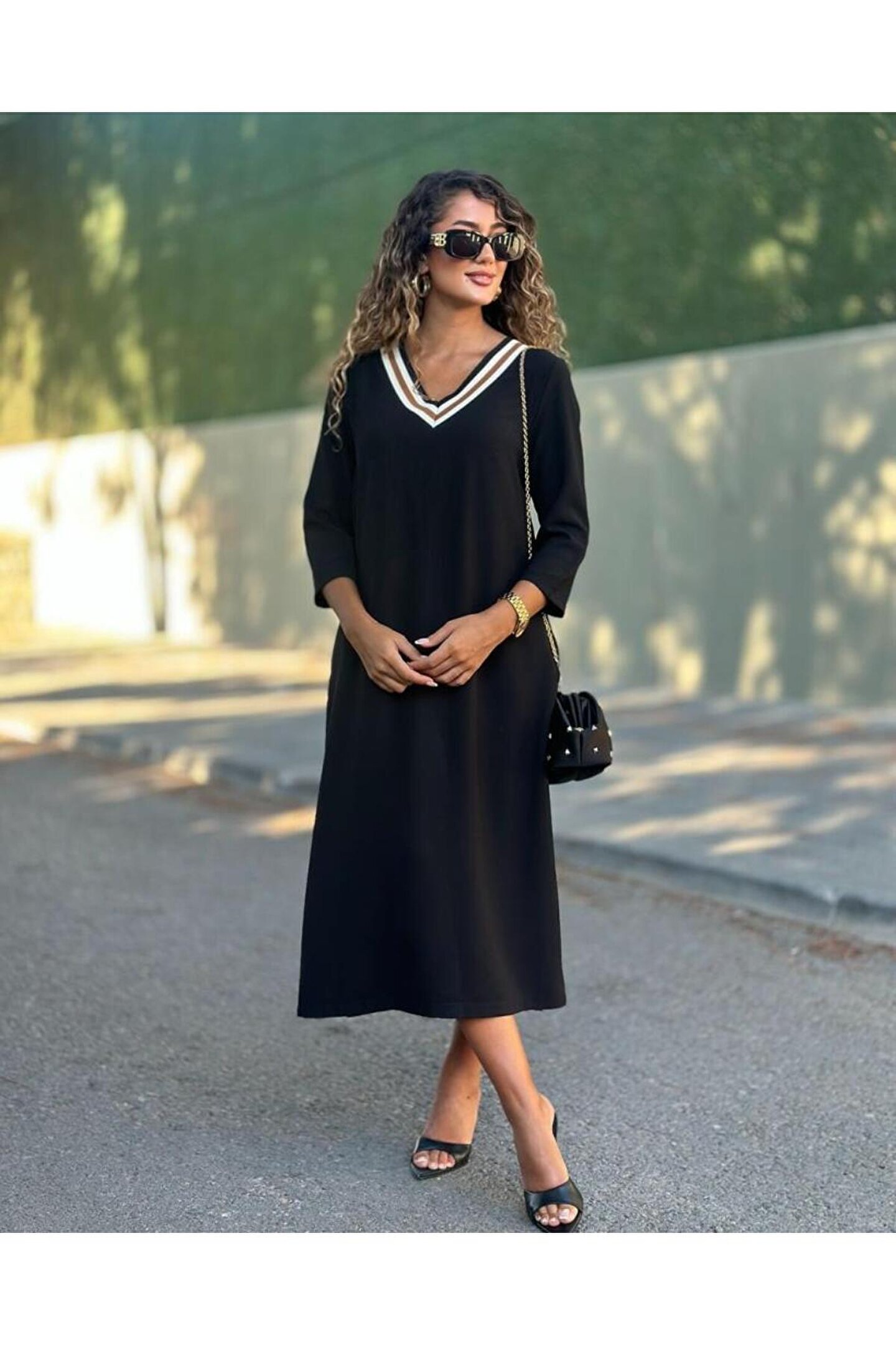 Kadın Uzun Kollu V şerit Yakalı Viskon Iki Iplik Elbise