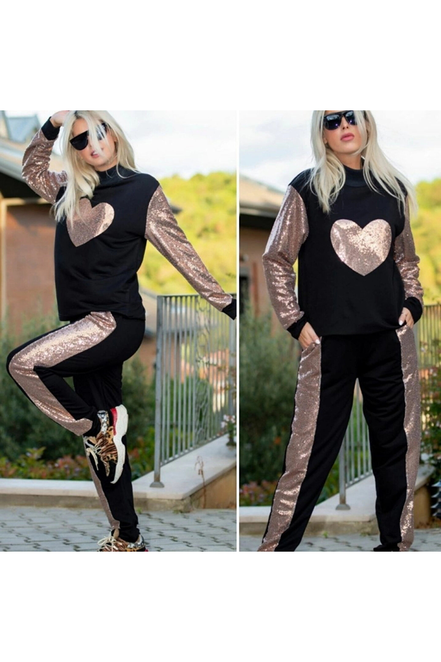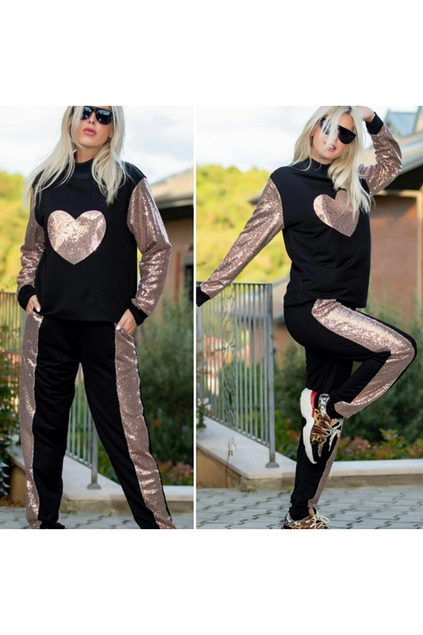 HAZEGO Kadın Uzun Kollu Yarım Balıkçı Yaka Pul Payet Detay Iki Iplik Ikili Takım