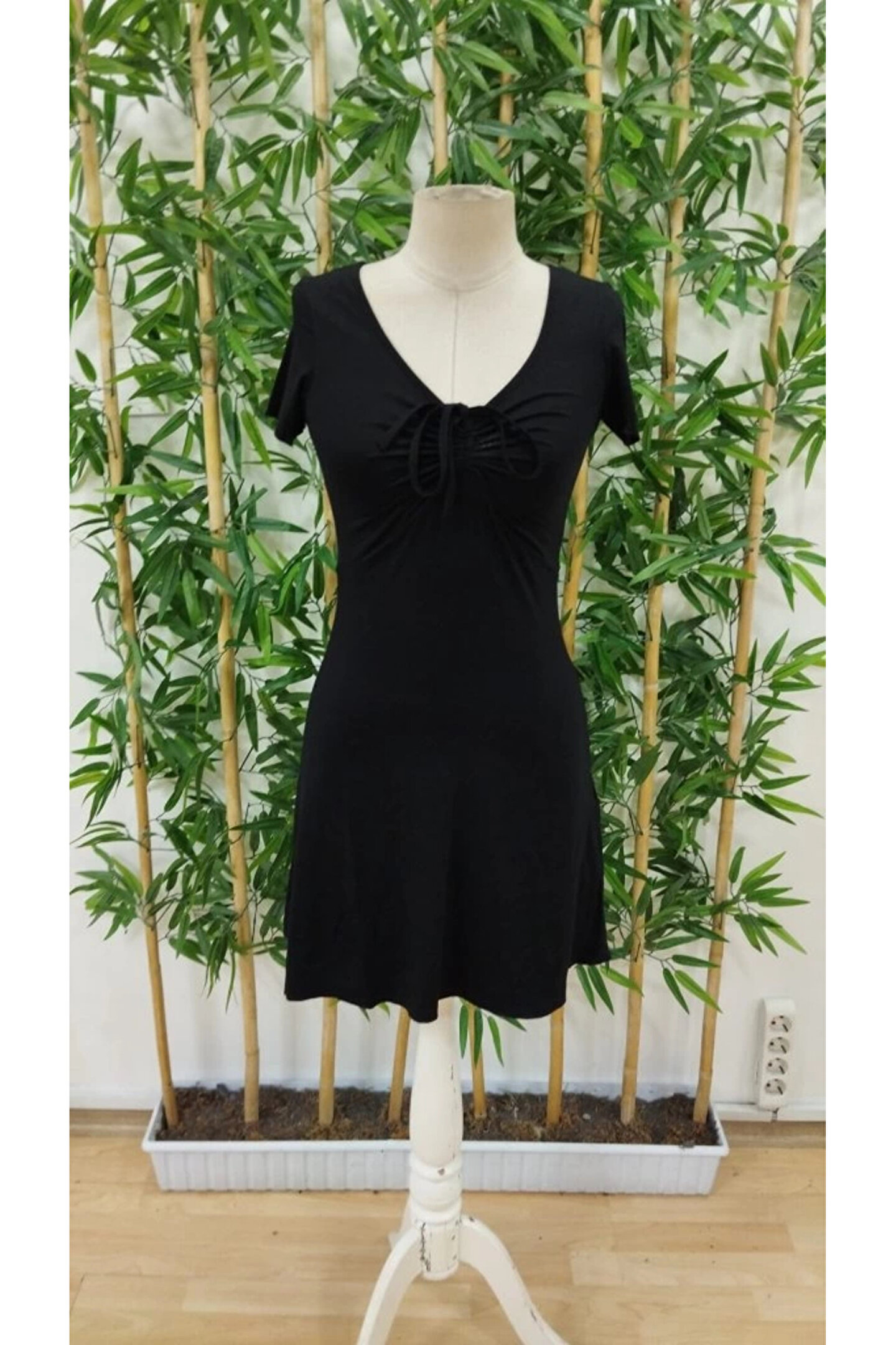 Kadın Kısa Kollu V Yakalı önden Düğmeli çift Renkli Viskon Elbise