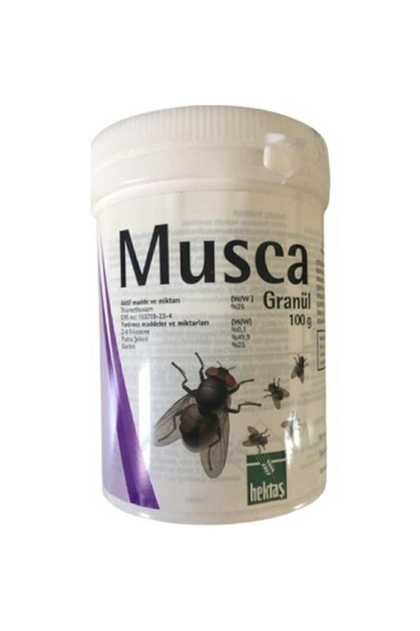 Musca 100 gram karasinek granülü hektaş ilaç Musca granül karasinek ilacı 100 gr. ; Uzun süre etkili karasineklerle mücadele ilacıdır. ; Tek uygulama ile uzun süre netice alabileceğiniz. ; Hektaş kalitesi ile üretilmiş etkili, granül şeklinde üretilmiş bir sinek ilacıdır. ; Farmasotik şekli: Granül ; Etkin madde: Thiamethoxam - %25 w/w yardımcı maddeler: Z-9 tricosene - %0,01 w/w pudra şekeri - %49,9 w/w kaoren - %25 w/w Musca 100 gr karasinek granülü hektaş ilaç endikasyonları Musca granül, karasinek mücadelesinde kullanılan, % 25 thiamethoxam, içeren bir insektisittir.; Musca 100 gr karasinek granülü hektaş ilaç musca granül karasinek ilacı 100 gr, uzun süre etkili karasineklerle mücadele ilacıdır. Tek uygulama ile uzun süre netice alabileceğiniz, hektaş kalitesi ile üretilmiş etkili, granül şeklinde üretilmiş bir sinek ilacıdır. Farmasotik şekli:Granül Etkin madde:Thiamethoxam - %25 w/w yardımcı maddeler:Z-9 tricosene - %0,01 w/wpudra şekeri - %49,9 w/wkaoren - %25 w/w musca 100 gr karasinek granülü hektaş ilaç endikasyonları: Musca granül, karasinek mücadelesinde kullanılan, % 25 thiamethoxam, içeren bir insektisittir. Kullanım şekli: Boyama ya da spreyleme yöntemleri ile karasineklerin barındığı, dinlendiği, ürediği açık ve kapalı her türlü yüzeye uygulanır. Boyama yöntemi:100 g musca granül, 150 ml suda çözünür ve koyu kıvam elde edilinceye kadar karıştırılır. Daha sonra elde edilen bu karışımla yaklaşık 90 m2lik taban alanı ya da 250 m2duvar alanı boyanabilir. Sprey yöntemi:100 g musca granül, 1 l ılık suda karıştırılır. Elde edilen bu karışım, 50 m2lik taban alanı ya da 120 m2duvar ya da yüzey alanına uygulanabilir. Boyama ya da spreyleme yöntemleri ile karasineklerin barındığı, dinlendiği, ürediği açık ve kapalı her türlü yüzeye uygulanır. ; Boyama yöntemi: 100 g musca granül, 150 ml suda çözünür ve koyu kıvam elde edilinceye kadar karıştırılır. Daha sonra elde edilen bu karışımla yaklaşık 90 m2lik taban alanı ya da 250 m2 duvar alanı boyanabilir. ; Sprey yöntemi: 100 g musca granül, 1 l ılık suda karıştırılır. Elde edilen bu karışım, 50 m2lik taban alanı ya da 120 m2 duvar ya da yüzey alanına uygulanabilir. ; %25 Thiamethoxam içeriği ile etkin çözüm sunar. ; Piridinli insektisitler grubunda yer alan %25 Thiamethoxam ile sistemik etki sağlar. ; Formülündeki doğal feromon Z-9 Tricosene ile ortamdaki sinekleri çeker. ; Sırt tipi ya da motorlu pülverizatör ile açık, kapalı her türlü yüzeye uygulama imkanı sunar. ; Ani ve uzun süreli (4-8 hafta) etki gösterir. ; ORİJİNAL ÜRÜNDÜR. ;