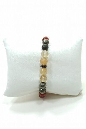 Helsinki Accessories Para Bilekliği Sitrin Pirit Akik Doğal Taş Bileklik
