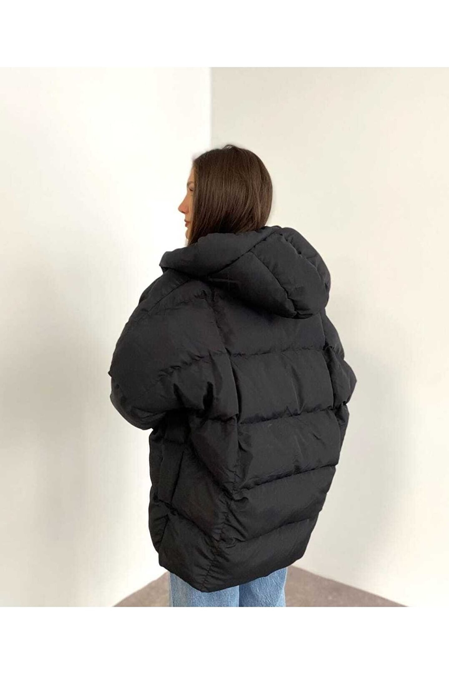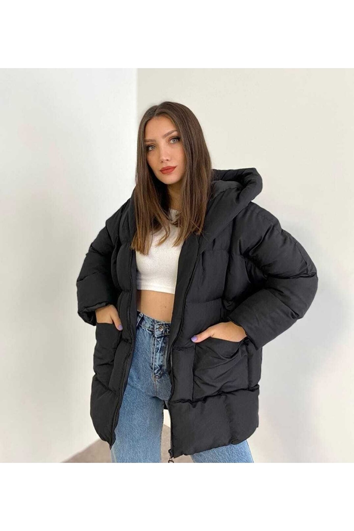 Bu kadın kapşonlu şişme mont, hem stil sahibi hem de fonksiyonel bir dış giyim parçası olarak öne çıkıyor; Kalın dolgu tekniği sayesinde soğuk havalarda sıcak tutan bu mont, yoğun elyaf dolgusu ile üstün yalıtım sağlıyor; Düz deseni ve astarlı yapısıyla hem şık hem de konforlu bir kullanım sunuyor; Yarasa kol tasarımı, geniş hareket alanı sağlarken, fleto cepleri eşyalarınız için pratik depolama alanları oluşturuyor; Fermuarlı kapama mekanizması kolay giyip çıkarmayı mümkün kılıyor ve kapüşonlu yaka tipi baş ve boyun bölgesini koruyor; Bu mont, trend stil anlayışını modern dokuma kumaşıyla harmanlayarak günlük kullanımda da göz alıcı bir görünüm kazandırıyor; Regular boy kesimi ile vücuda tam oturan yapısıyla her bedene uygun bir seçenek olarak öne çıkıyor; ;;