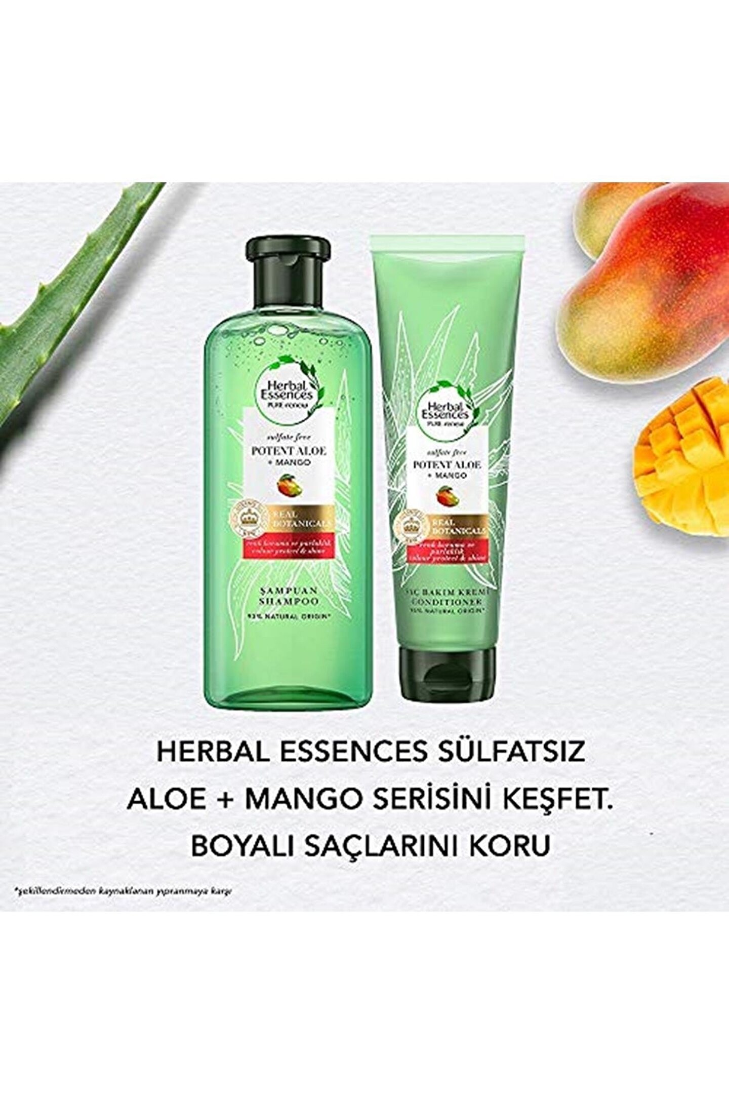#özelürün; Tabiat Ana sırlarla doludur: bunlardan biri de hassas ve etkili nemlendirme özelliğine sahip Aloe bitkisi; Herbal Essences, 260 yıllık botanik deneyimine sahip Kraliyet Botanik Bahçesi, Kew tarafından onaylı tek marka olup, bu işbirliği sayesinde sizin için saç bakım ürünlerinin formülünde kullanılabilecek en güçlü Aloe'yi buldu. Güçlü ve Saf Aloe + Mango İçeriği ile Herbal Essences Sülfatsız Saç Bakım Kremi boyalı saçlarınızın renginizi ve parlaklığını korumaya yardımcı olur, içeriğindeki kaliteli aloe ile derinlemesine nemlenmesini sağlar. Sülfatsızdır %93 doğal köken (saflaştırılmış su ve ve sınırlı işlem görmüş doğal kökenli bileşen maddeleri) içerir; pH dengeli ve boyalı saçlara uygun
