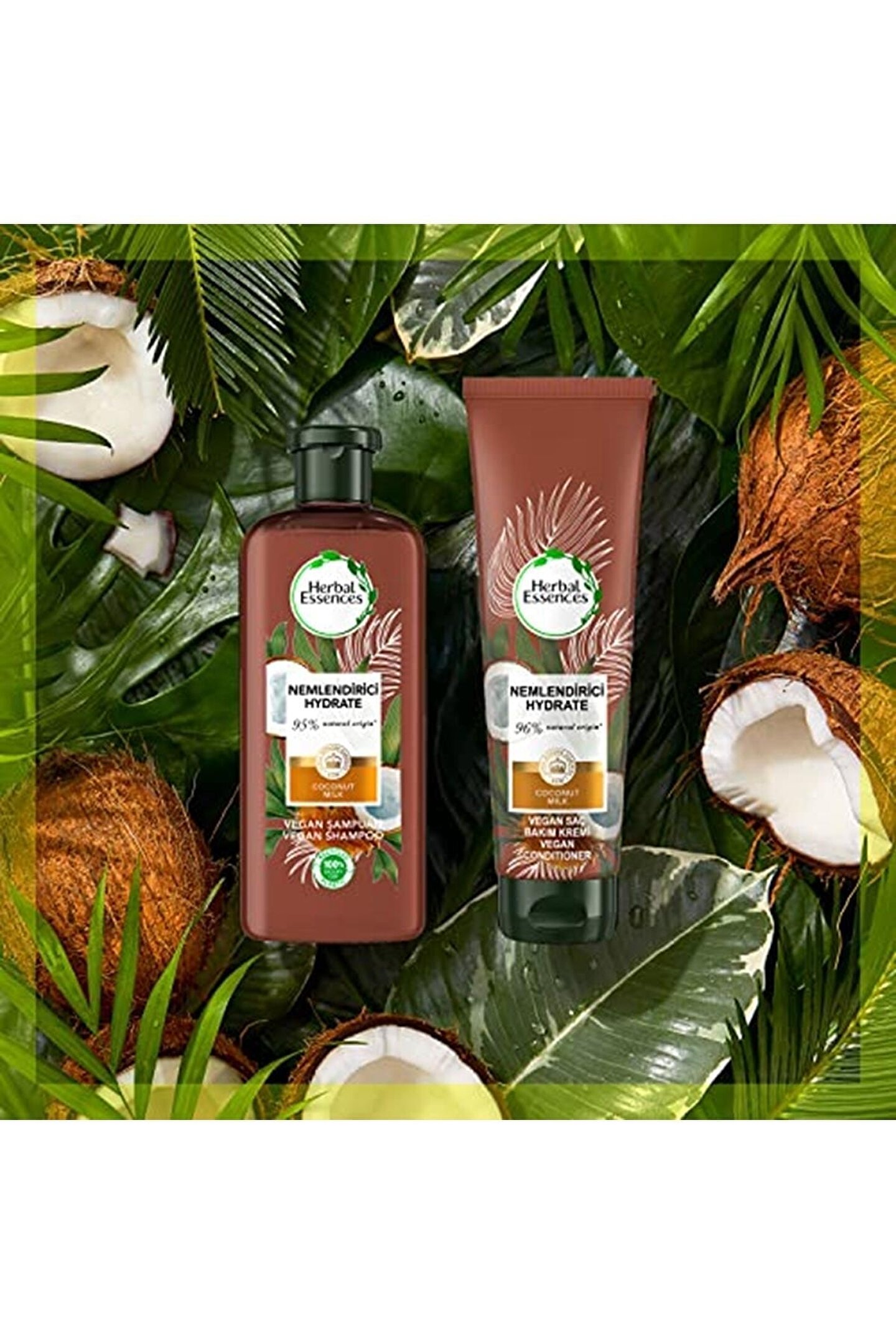 Essences of life Hindistan Cevizi Sütlü şampuan ve saç bakım kremi koleksiyonu hasarlı saçları nemlendirip yumuşatmaya ve doğal güzelliklerini ortaya çıkarmaya yardımcı olur. ; Saçlarınız daha hafif ve yumuşak hale gelir. ; Herbal Essences olarak biz, bitkilerin iyileştirici gücüne inanıyoruz. ; Hindistan Cevizi Sütlü Şampuan ve Saç Bakım Kremi koleksiyonunu saçınıza, ruhunuza ve gezegene yeniden hayat vermek için tasarladık. ; Besleyici, zevk veren formüllerimiz, saf bitki özleri ve bitki özlü besinlerle hazırlanır ve sorumlu bir şekilde tasarlanmış ambalajlarda şişelenir. ; Saçınızın en iyi halini ortaya çıkarın ve gezegeni korurken biraz neşelenip gevşeyin. ; Nemlendirici saç bakim kremi: derinlemesine etki ederek hasarlı saçları nemlendirip yumuşatmaya ve doğal güzelliklerini ortaya çıkarmaya yardımcı olur Tek kullanımda 2 kat fazla besleyici. ; Saçınızı bitki özlü besin ve antioksidanlarla besleyin Saf bitki özleri: saf Hindistan Cevizi ve Aloe içeren saç bakım kremi İyi bir kullanım deneyimi için %96 doğal kaynak (%88 saf su ve %8 doğal türevli bileşenler), diğer %4 Sorumlu güzellik: PETA Vegan tarafından onaylıdır ve hayvanlar üzerinde denenmemiştir. ; Renklendirici İçermez. ; Boyalı Saçlar için Güvenli Beslenmiş saçlar ve gezegen: geri dönüştürülebilir tüp, geri dönüştürmemize yardımcı olun;