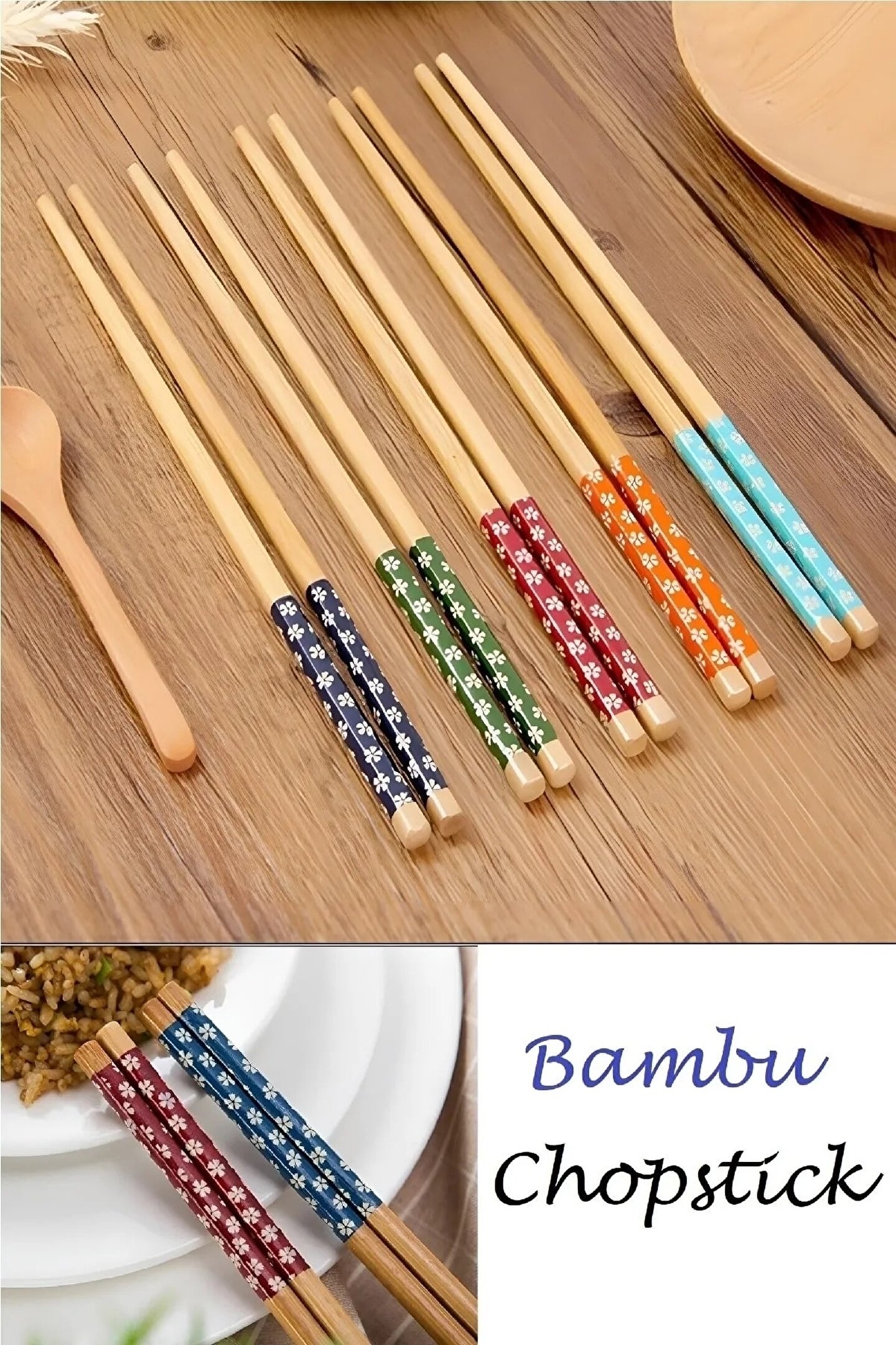 Hermoni Çin Bambu Yemek Çubukları 5 Çift