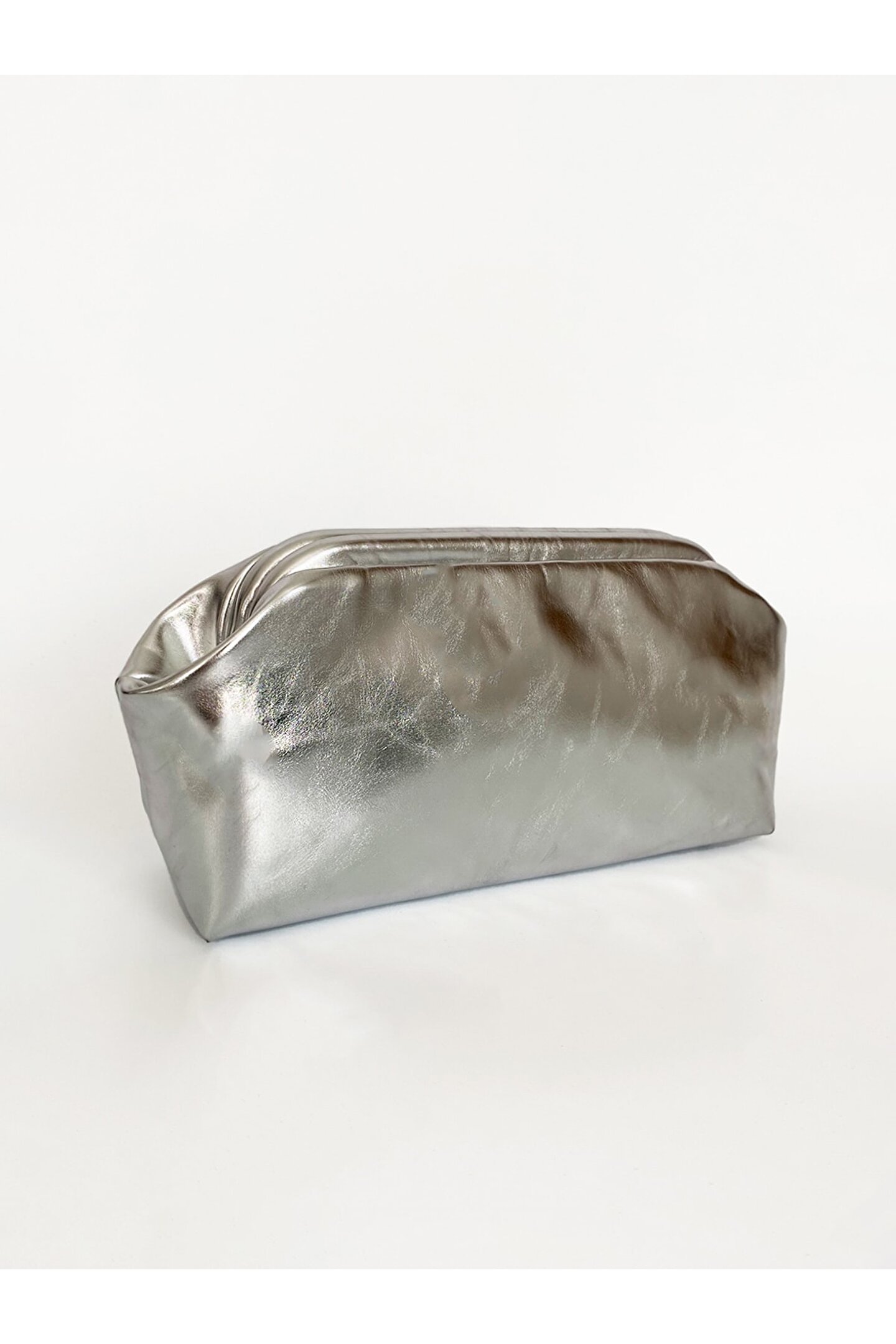 Heybes Kadın Gümüş Lame Parlak Dokulu Deri Clutch El Çantası; Zarif tasarımıyla dikkat çeken gümüş lame parlak dokulu deri clutch el çantası, şıklığınızı tamamlayacak bir aksesuardır.; Düz deseniyle sade ve modern bir görünüm sunan bu clutch çanta, her türlü kıyafetle kolayca uyum sağlar.; Şık ve gece ortamları için ideal olan bu clutch çanta, özel davetlerde ve etkinliklerde göz alıcı bir aksesuar olarak öne çıkar.; Kilit kapama sistemi pratik kullanma imkânı sunar.; Heybes tarafından özel el işçiliği ile üretilmiştir.; •Dış Malzeme: Vegan Deri •İç Malzeme: Vegan Deri; İçi astarlıdır ve 1 adet iç cebi bulunmaktadır.; 32x15x10 cm (Genişlik x Yükseklik x Derinlik) ölçülerindedir.