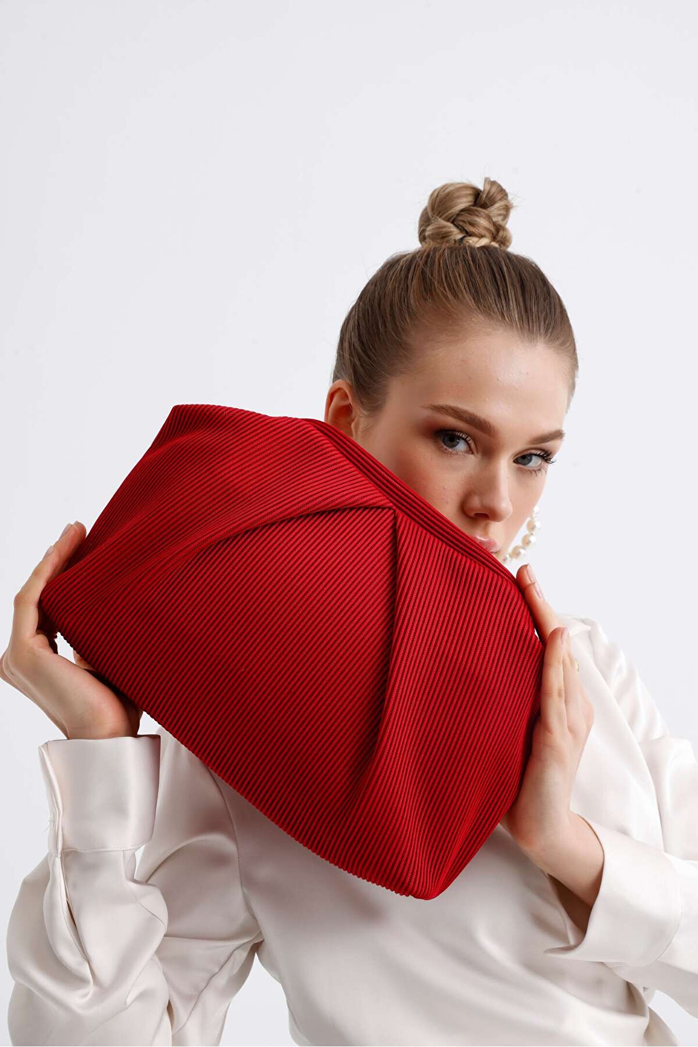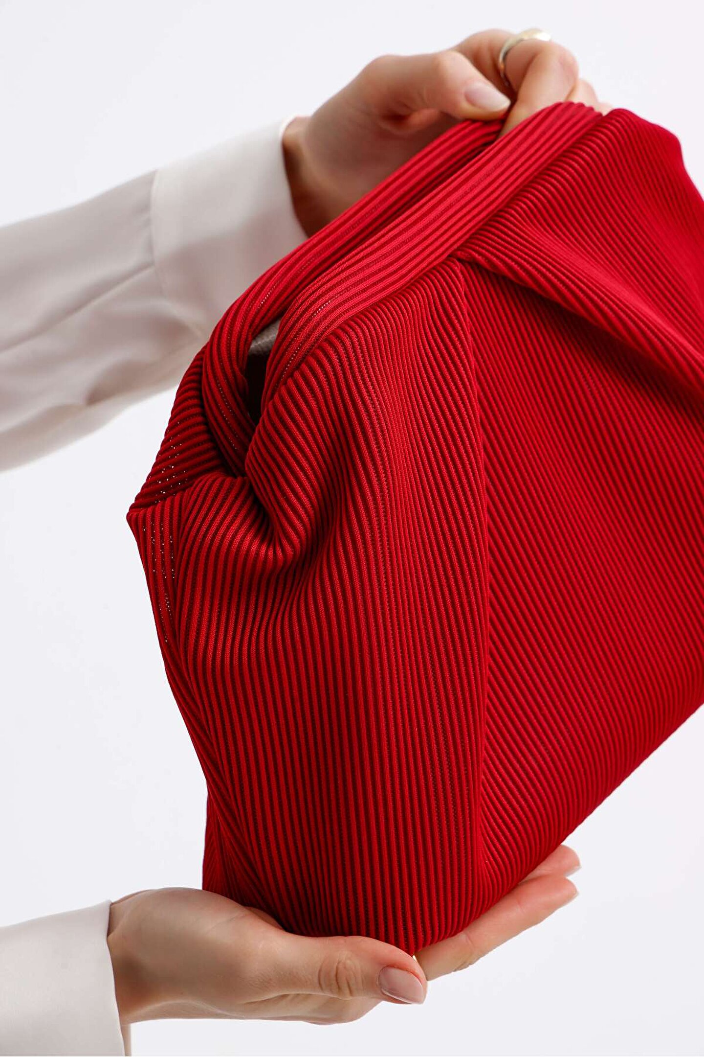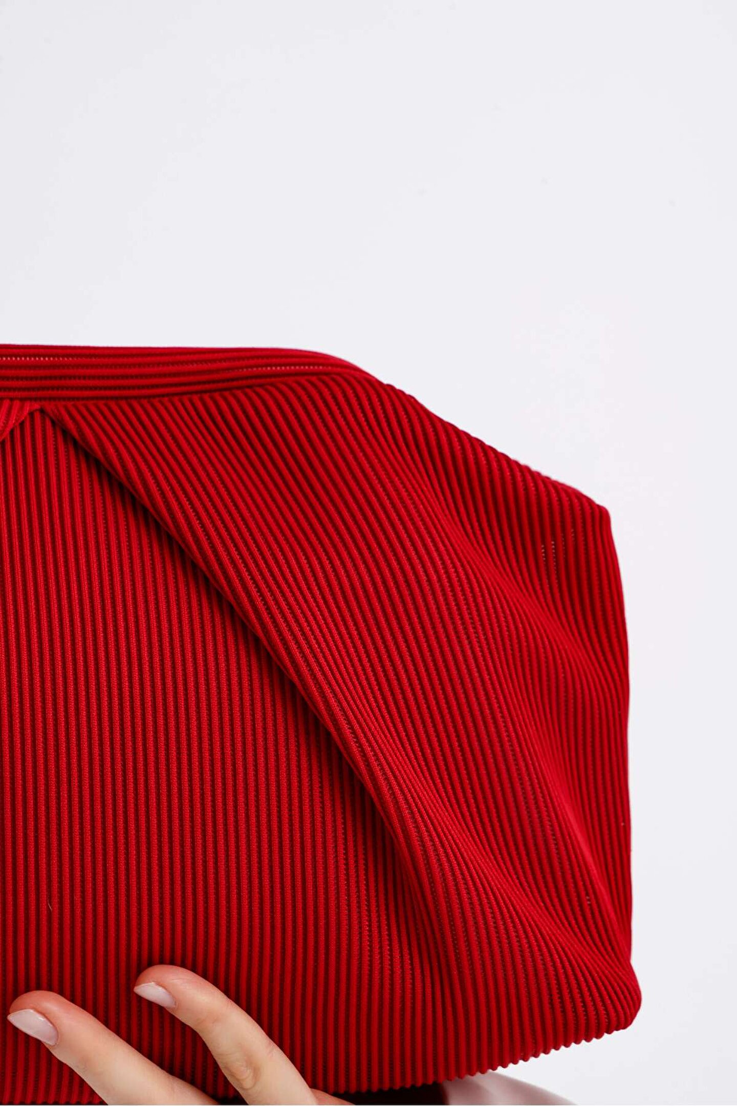 Heybes Kadın Kırmızı Piliseli Clutch El Çantası; Piliseli kumaştan üretilmiştir.; Hem günlük stile hem özel davetlere uyum sağlar.; Dokusuyla zarafeti ve modernliği buluşturan tasarım, canlı kırmızı rengiyle dikkat çeken eşsiz şıklık sembolüdür.; Pilise detayıyla sanatsal, güçlü ve iddialı bir çanta.; Kilit kapama sistemi pratik kullanım imkânı sunar.; Heybes tarafından özel el işçiliği ile üretilmiştir.; İç kısmı astarlıdır ve 1 adet iç cebi bulunmaktadır.; •Gövde: Dokuma Kumaş •İç Materyal: Vegan Deri; 28x19x10 cm (Genişlik x Yükseklik x Derinlik) ölçülerindedir.; • İç hacim yükseklik: 16 cm • İç hacim genişlik: 18 cm
