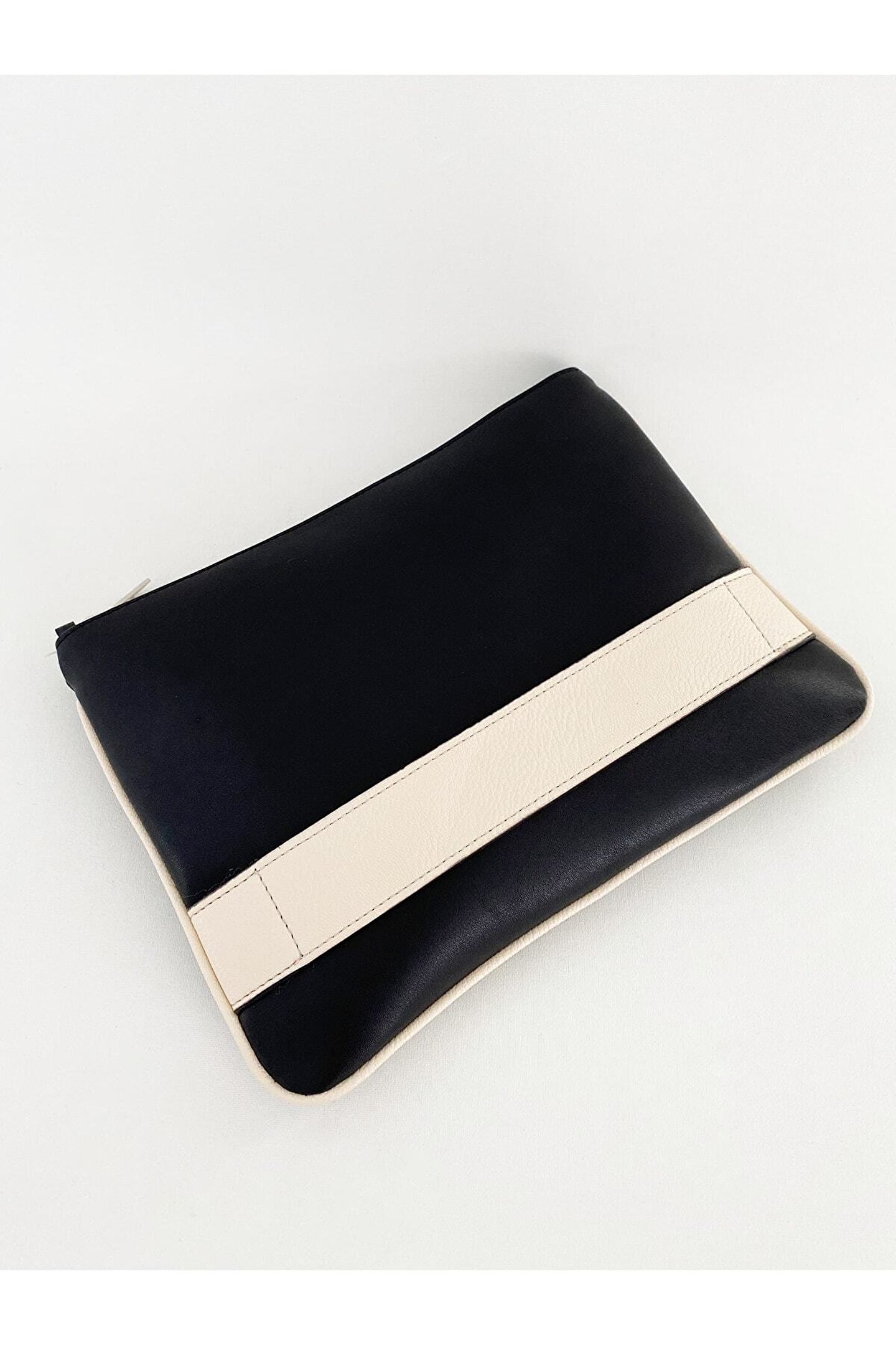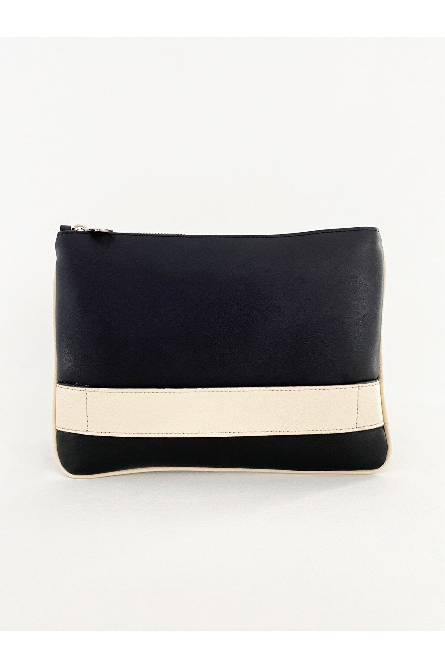 Heybes Siyah Bantlı Portföy Çanta; Minimal ve modern çizgileriyle öne çıkan bu clutch çanta, hem gündüz hem gece kullanımı için zarif bir alternatiftir.; Fermuarlı yapısı sayesinde eşyalarınızı güvenle saklamanızı sağlar.; Heybes tarafından özel el işçiliği ile üretilmiştir.; İç kısmı astarlıdır ve 1 adet iç cebi bulunmaktadır.;•Dış Materyal: Vegan Deri •İç Materyal: Vegan Deri; 26 x 20 cm (Genişlik x Yükseklik) ölçülerindedir.
