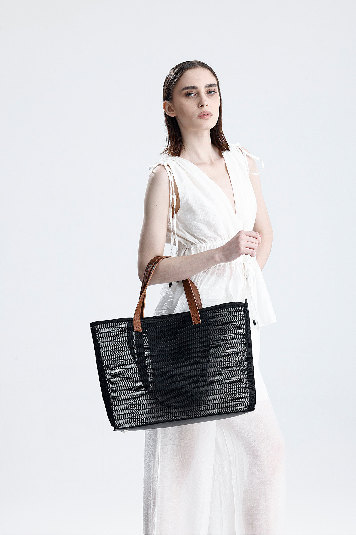 Kadın Siyah Petek Desenli Şeffaf Büyük Boy Plaj Ve Alışveriş Shopper Tote Omuz Çantası; Günlük alışveriş ihtiyaçlarınız için pratik, hafif olan bu çanta size eşlik eder.; Plaj ve günlük kullanıma uygundur.; Havlularınızı, cüzdanlarınızı, kremlerinizi ve benzeri eşyalarınızı rahatlıkla taşıyabileceğiniz boyuttadır.; Plajda, havuzda, piknikte, kampta istediğiniz yerde eşyalarınızı düzenlerken şık tasarıma sahip hoş bir çanta size eşlik edecektir.; Çevre dostu hasır kumaştan üretilmiştir.; 1 adet iç cebi bulunmaktadır.; Uzun ve kısa olmak üzere iki adet sapı bulunduğu için hem el çantası hem de omuz çantası olarak kullanabilirsiniz.; Aynı kumaştan üretilmiş clutch çanta modelimizle birlikte satın alabilir, ikisini birlikte kullanabilirsiniz.; Genişlik x Yükseklik x Derinlik: 58x35x18 cm'dir.; Kısa sap uzunluğu: 40 cm, uzun sap uzunluğu: 73 cm.