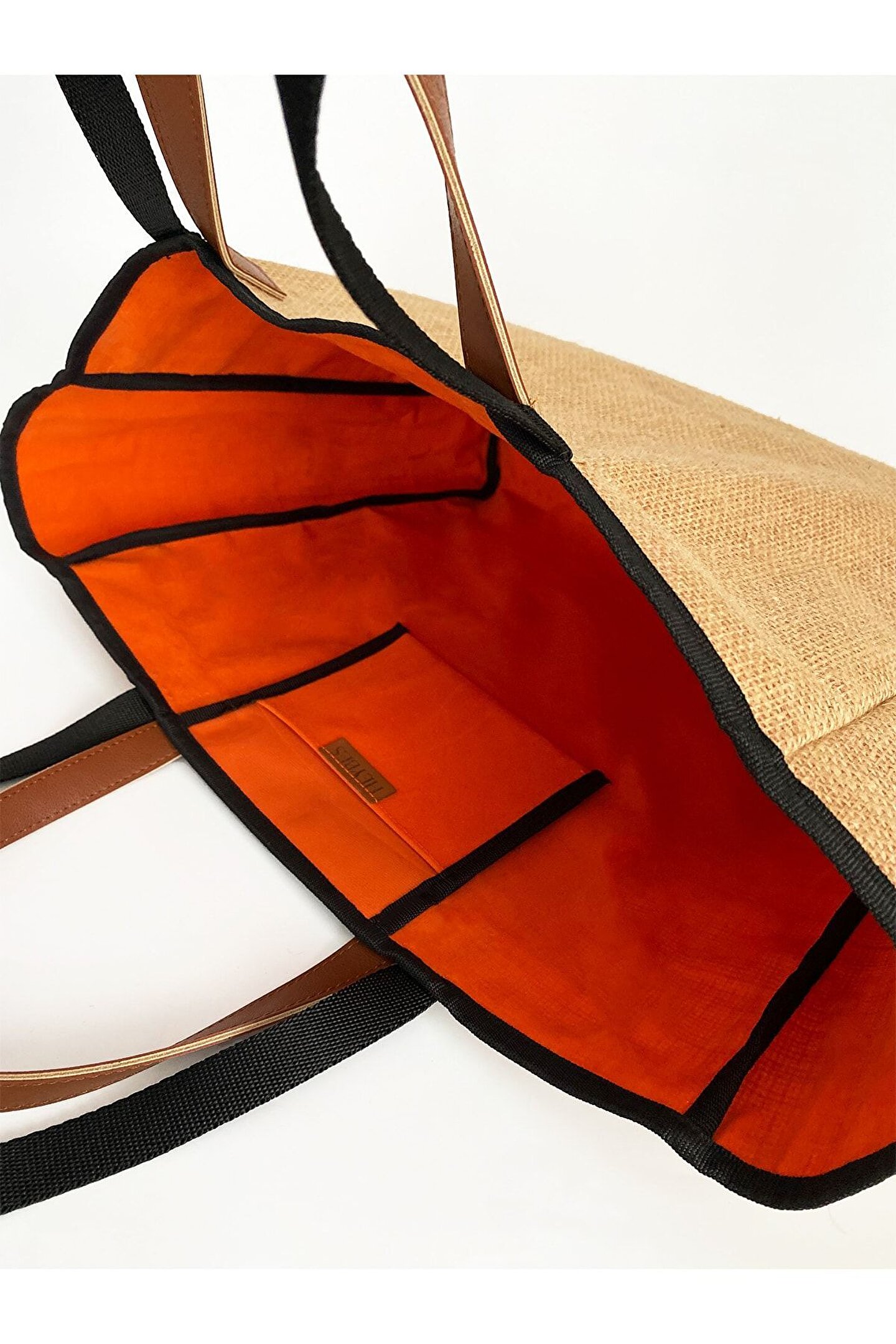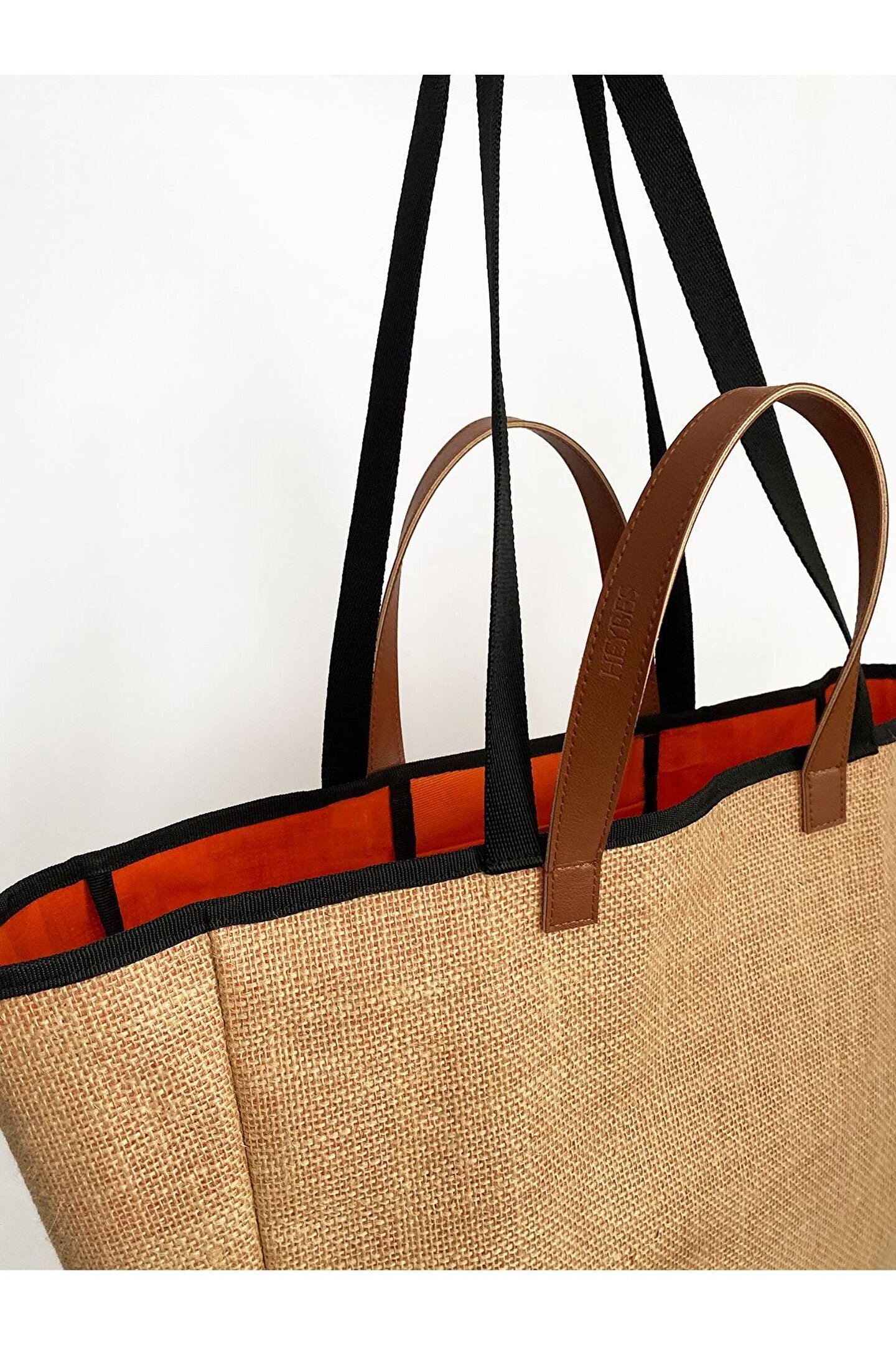 HEYBE‘S Kadın Turuncu Su Geçirmez Astarlı Jüt Hasır Büyük Boy Plaj Ve Alışveriş Shopper Tote Omuz Çantası