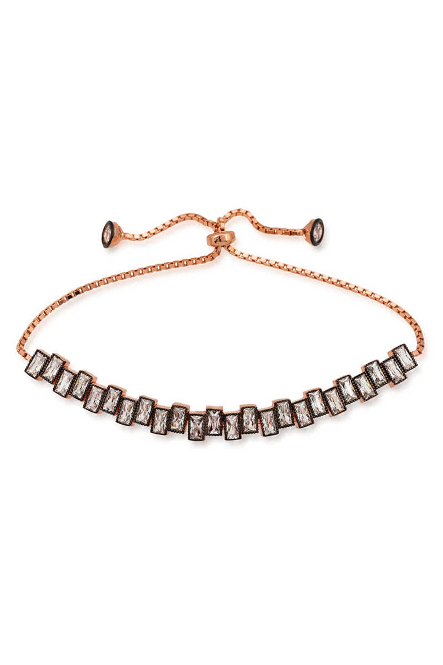 Samur Parti Parti Aksesuar & Kostüm 925 Ayar Gümüş Rose Baget Taşlı Asansör Bileklik
