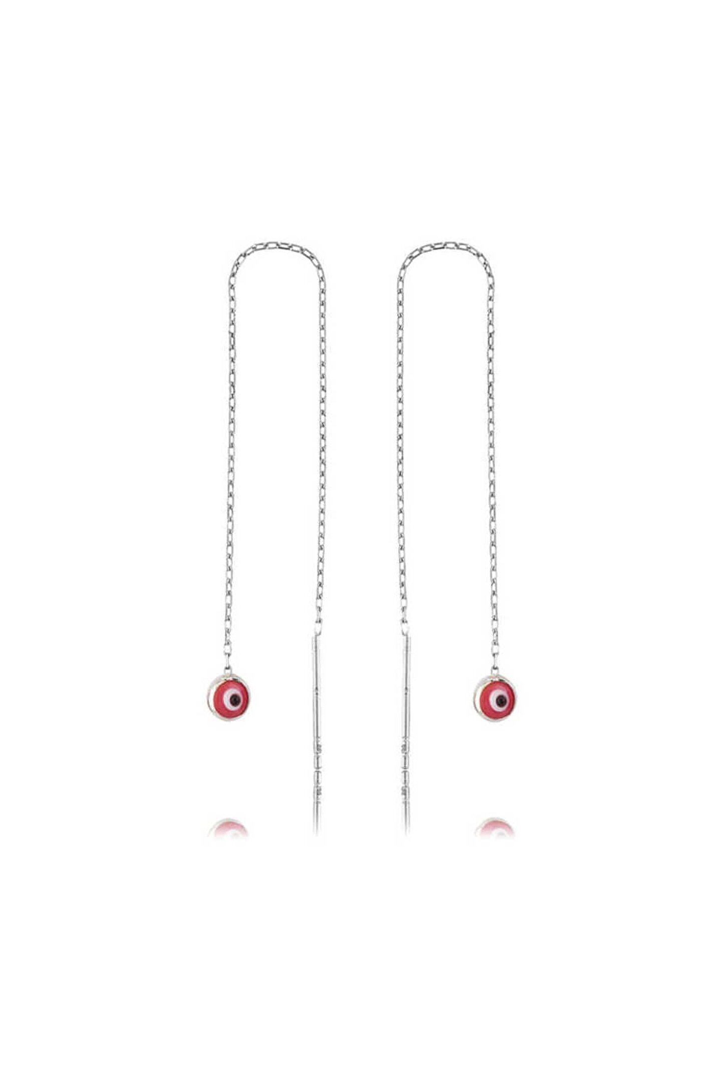 Samur Parti Parti Aksesuar & Kostüm 925 Ayar Gümüş Zincirli Pembe Nazar Küpe