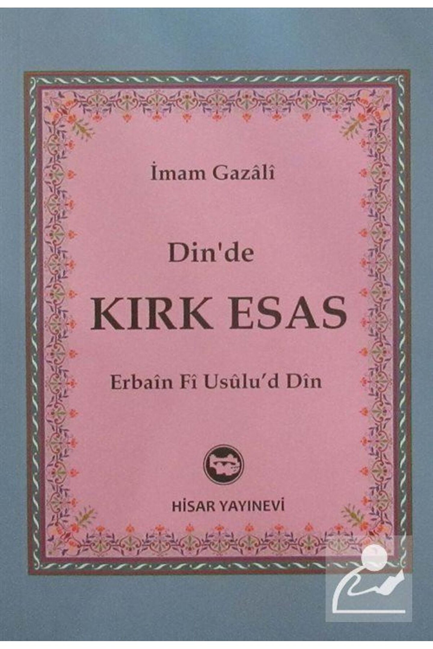 Dinde Kırk Esas İmam Gazali / Hisar Yayınları Basım Yılı: 2001; Sayfa Sayısı: 416; Kağıt Türü: Kitap Kağıdı; Ebat: 13,5 x 19,5; Dil: Türkçe; Cilt Durumu: Karton Kapak; ISBN: 9789757422785; Yazar: İmam Gazali; Çevirmen: Hüseyin S.; Erdoğan;