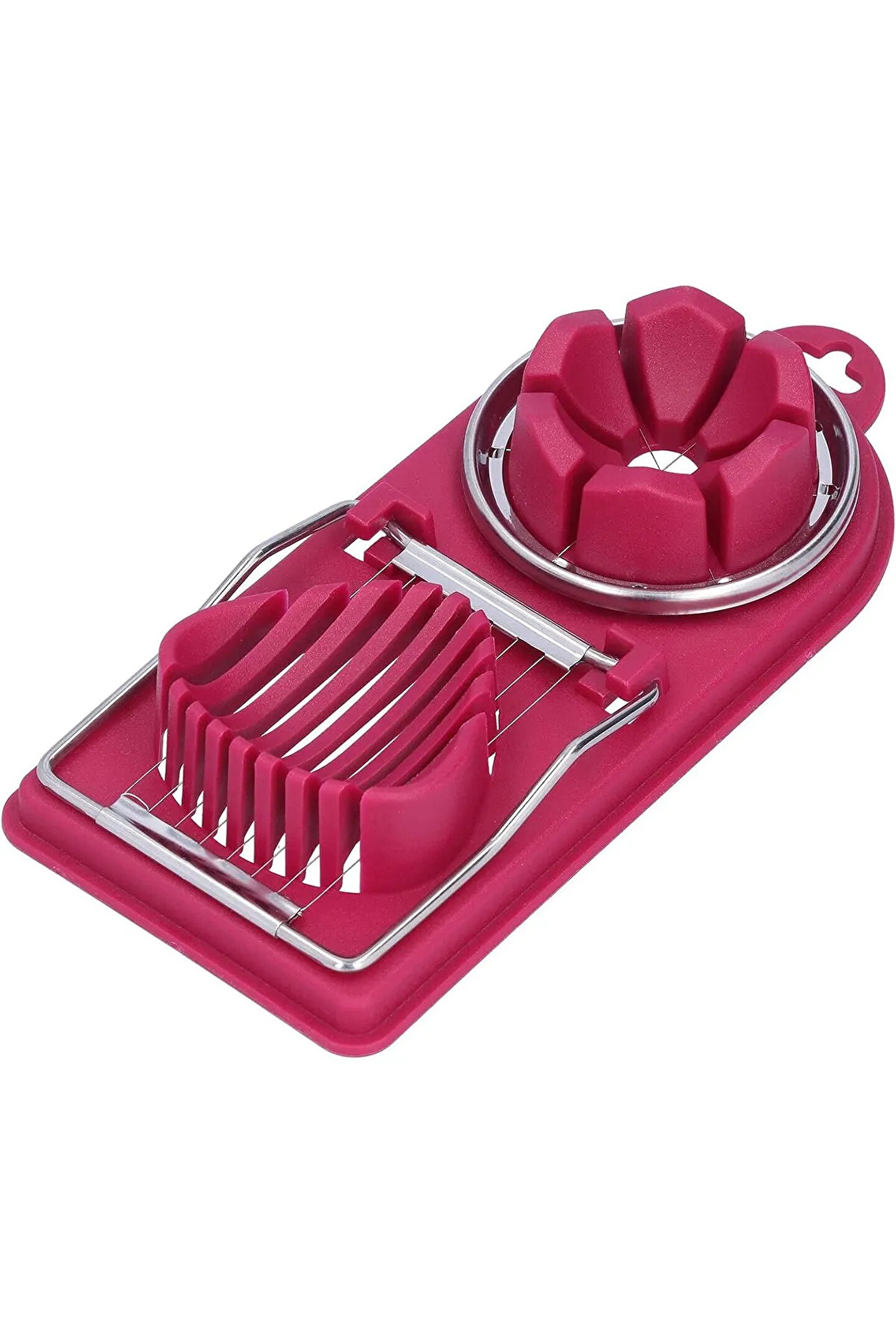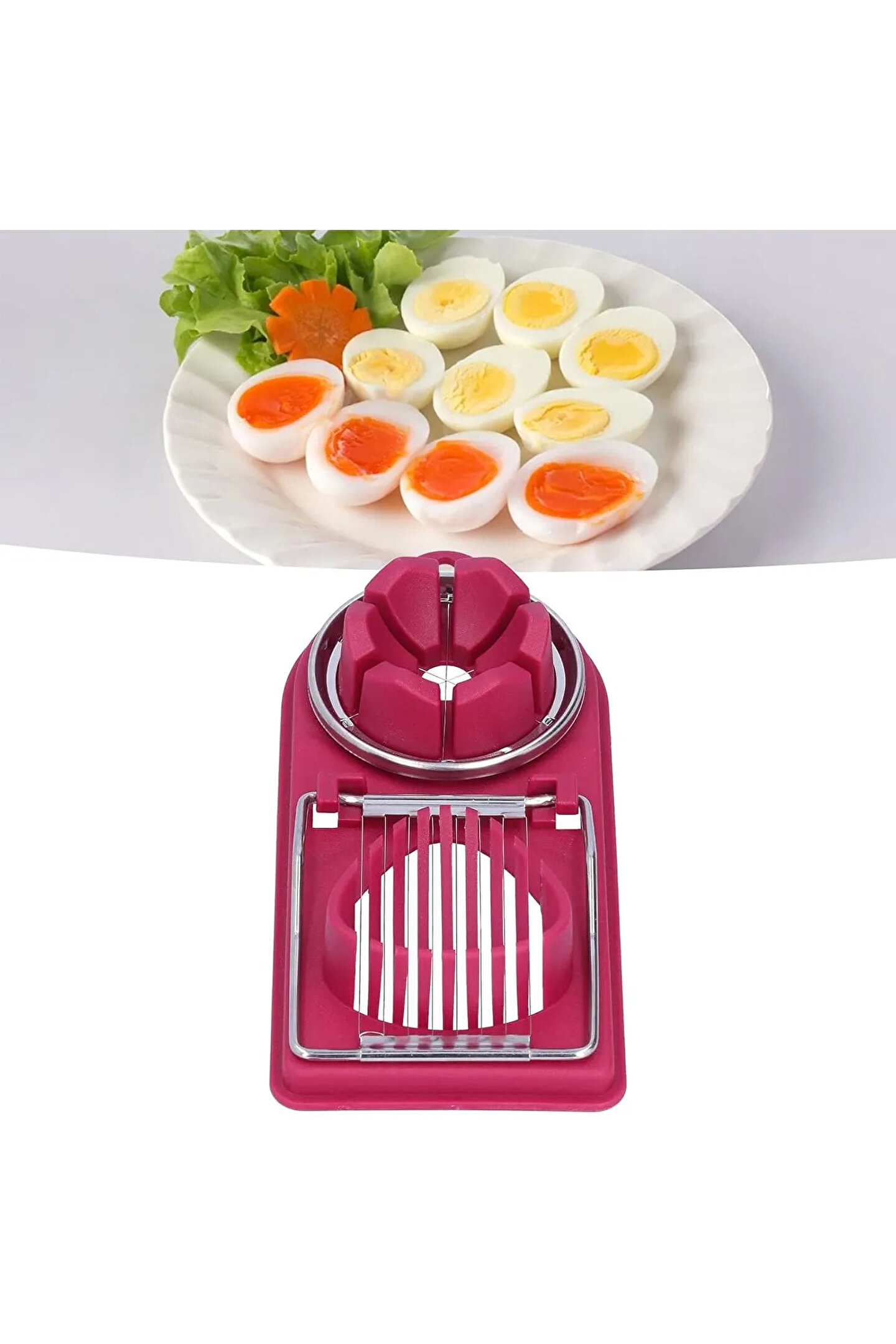 - Paslanmaz çelik malzemesi sayesinde uzun ömürlü ve dayanıklı kullanım sunar; - Yumurta, muz ve çilek gibi meyveleri kolayca dilimlemenize olanak tanır, mutfak işlerinizi pratikleştirir; - Keskin ve hassas bıçak yapısı ile mükemmel dilimleme performansı sağlar, yiyeceklerinizi eşit ve düzgün şekilde kesmenize yardımcı olur; - Mutfakta hijyenik bir ortam yaratır; paslanmaz çelik yapısı sayesinde temizlenmesi kolaydır ve bakımı pratiktir;