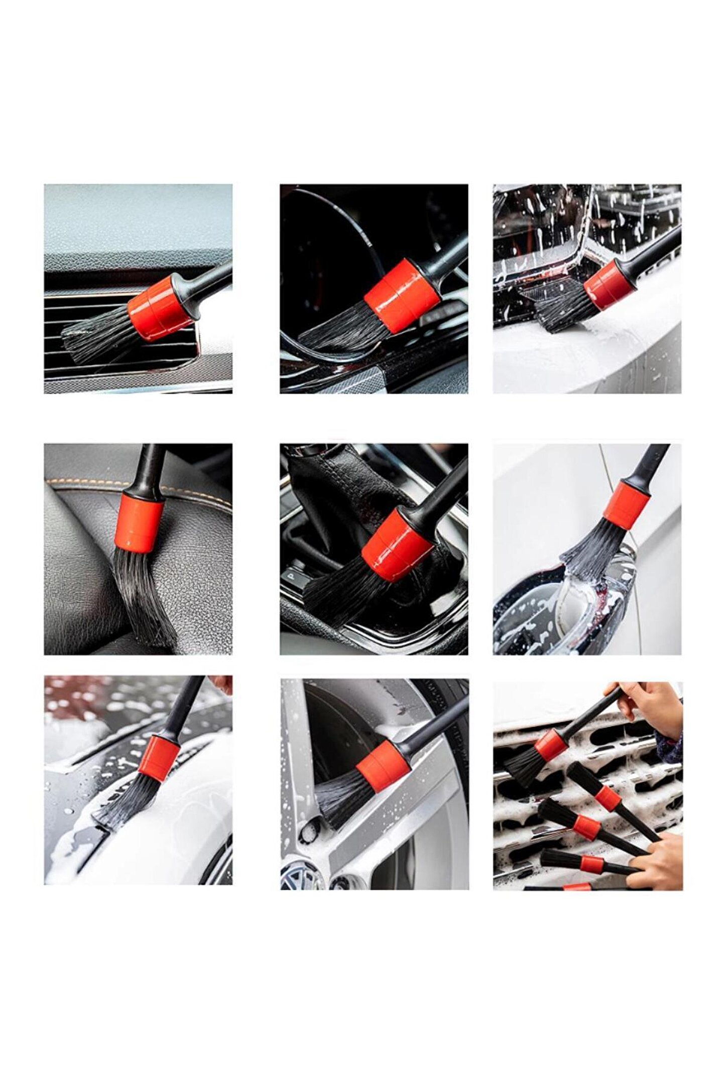 6 Parça Araç Oto İç Dış Konsol Torpido Detay Temizlik Fırça Seti Aracınızda temizlemekte zorlandığınız yerleri temizlemenizde yardımcı settir.; Koltuk araları, klima boşlukları, jant araları, ızgaralar, iç düğmeleri , konsol ve torpido gibi bölümleri detaylı bir şekilde ıslak veya kuru şekilde temizleyebileceksiniz.; Uzun kalem şeklindeki fırçalar 10,12,14,16,18 no şeklinde boyutlarına göre ayrılmıştır.; At kılı fırçası ile de konsol torpido gibi geniş alanları temizleyebilirsiniz.; Boyutları hakkında detaylı bilgiler görselde paylaşılmıştır.