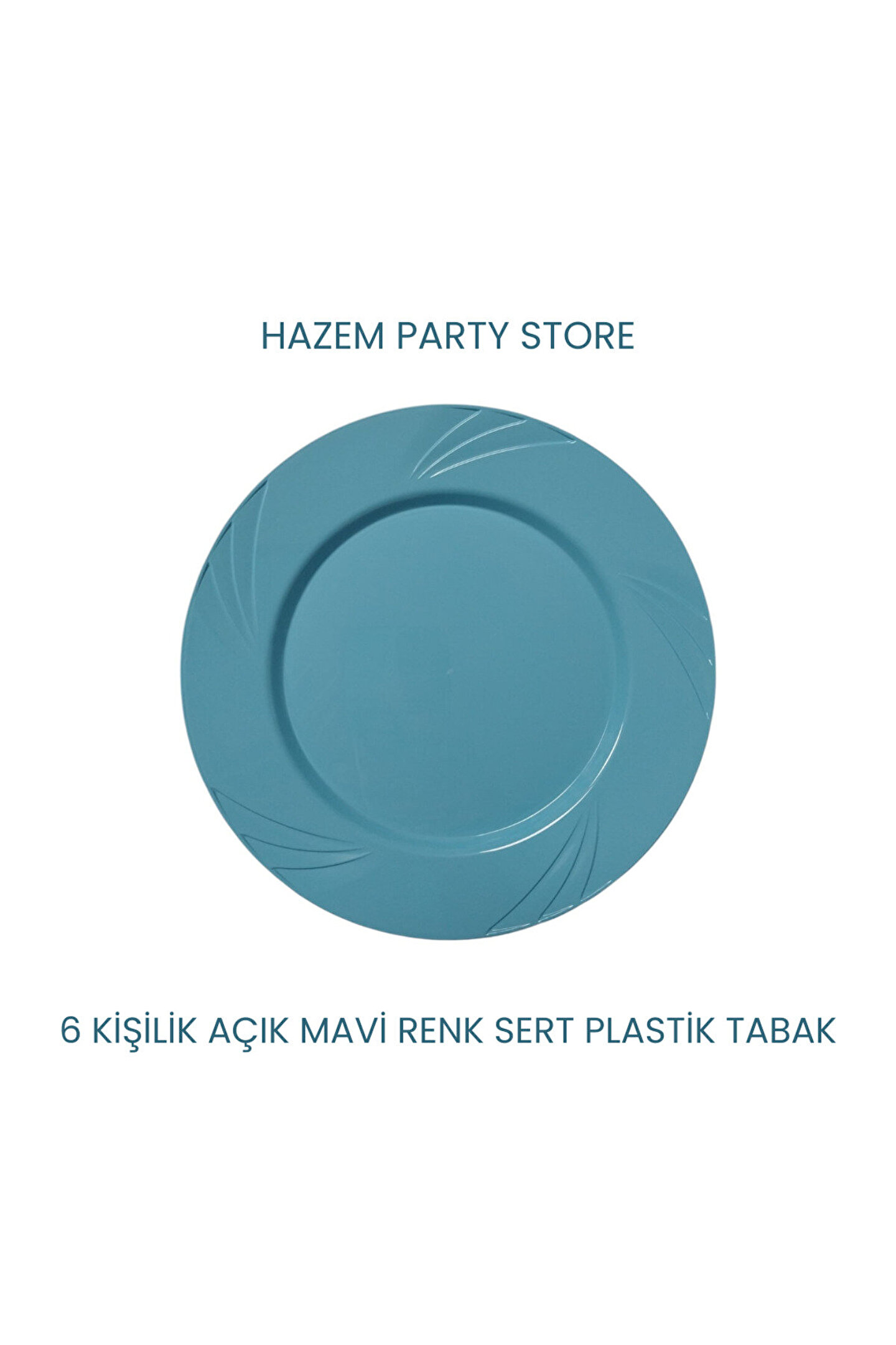 Şık ve dayanıklı mika malzemesinden üretilmiş, uzun ömürlü kullanım sunar.; ; Açık mavi renk seçeneğiyle sofralara modern bir dokunuş katar.; ; Plastik yapısı sayesinde hafif olup kolayca taşınabilir; pratik kullanım sağlar.; ; 6 adet set halinde gelir, misafirlerinize şıklığıyla göz dolduran tabaklar sunar.