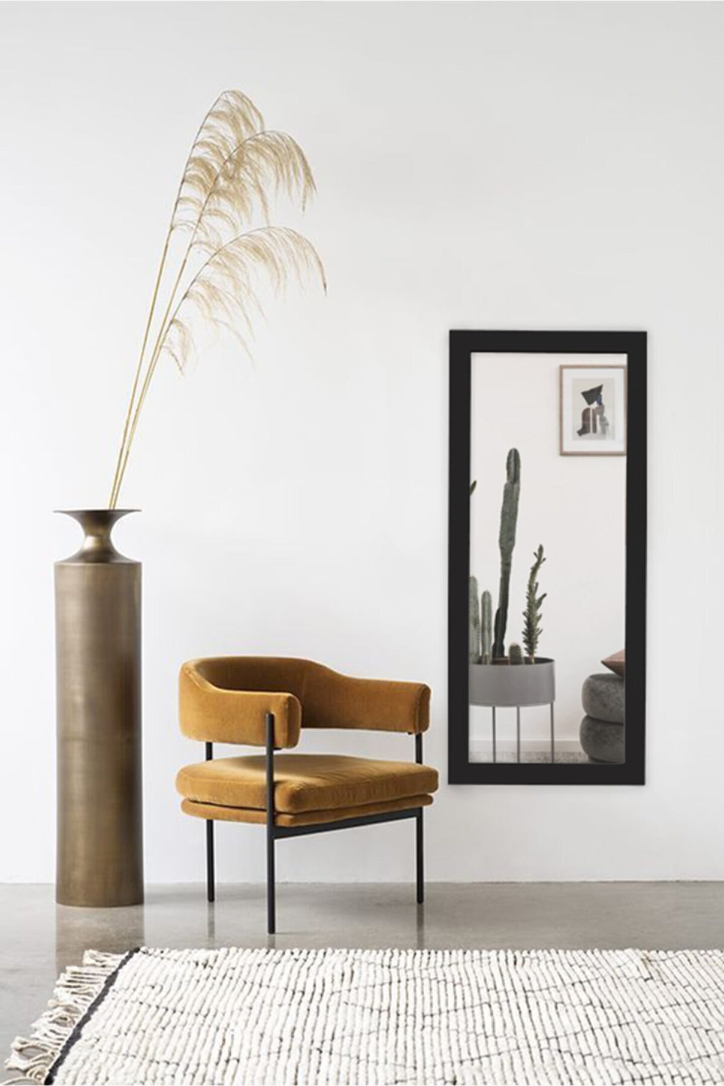 Ahşap malzeme kullanımı, dayanıklılığı ve uzun ömürlü kullanımı garanti eder; 100 x 38 cm boyutlarındaki geniş yüzeyi ile geniş bir görüş alanı sunar, böylece daha geniş bir alanı yansıtır; Retro tasarımı ile mekanınıza nostaljik bir hava katar ve dekoratif bir dokunuş sağlar; Siyah rengi, her türlü iç mekan dekorasyonuyla kolayca uyum sağlar ve şık bir görünüm oluşturur;