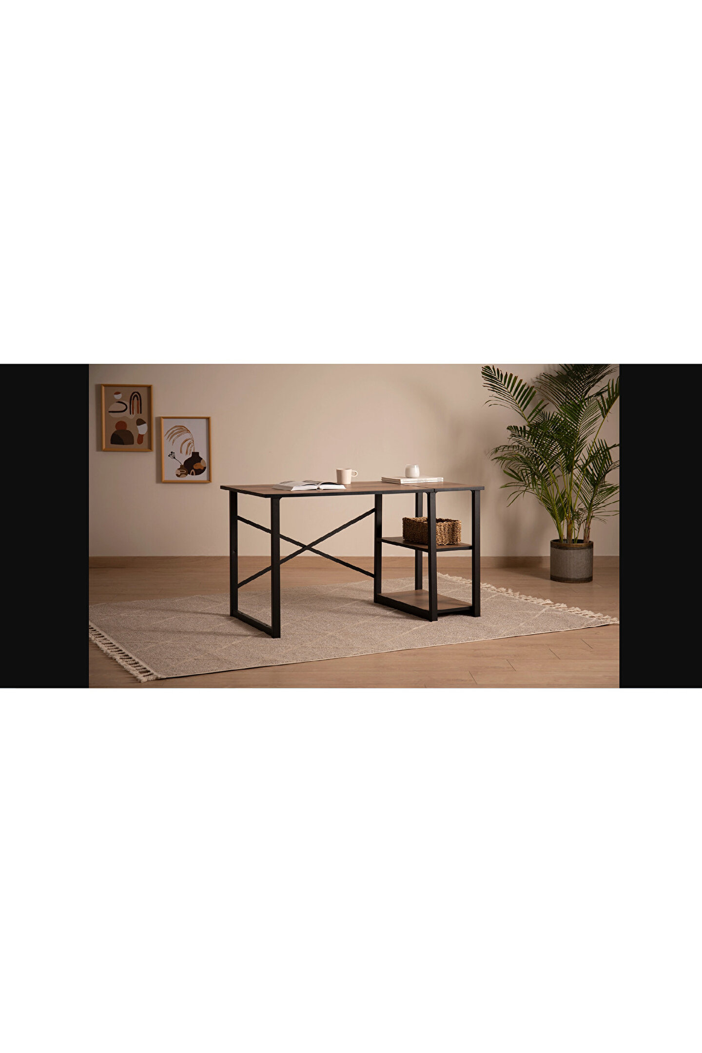 CEVİZ renk // Suntalam Çalışma masası // Metal ayaklı // Çift Raflı // 120x60 ÇALIŞMA MASASI (Yükseklik 75 cm)