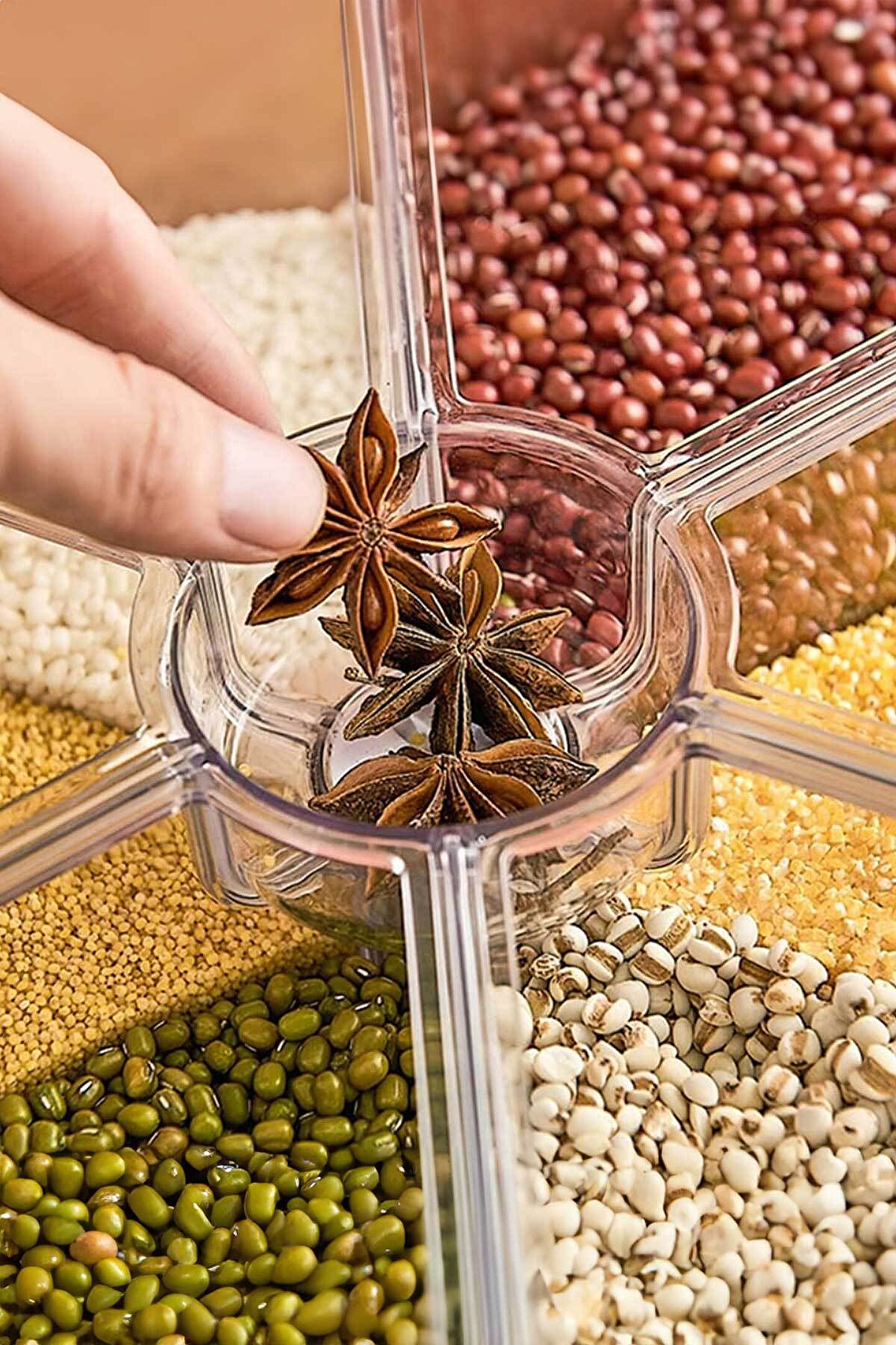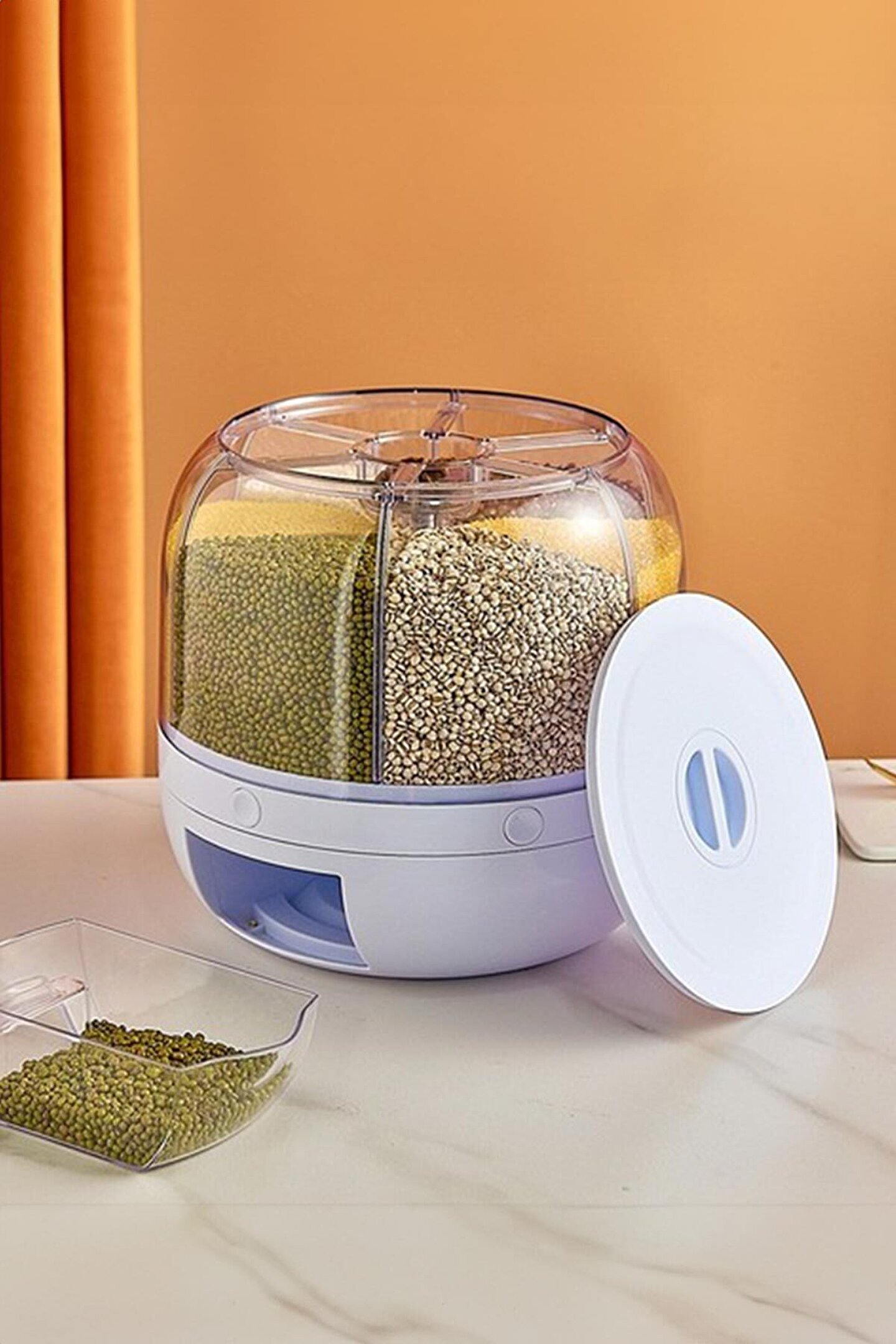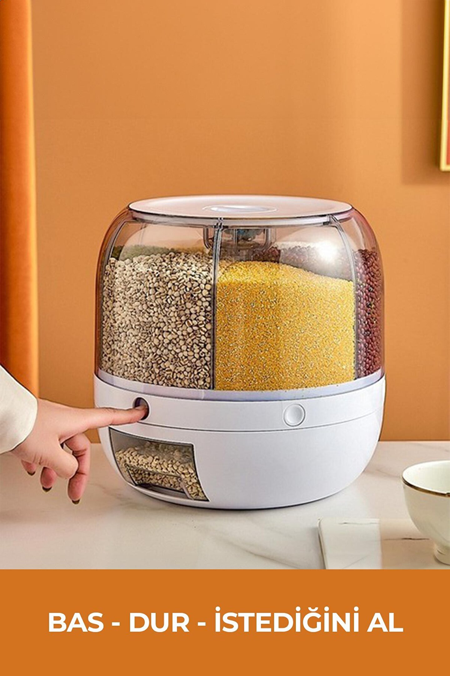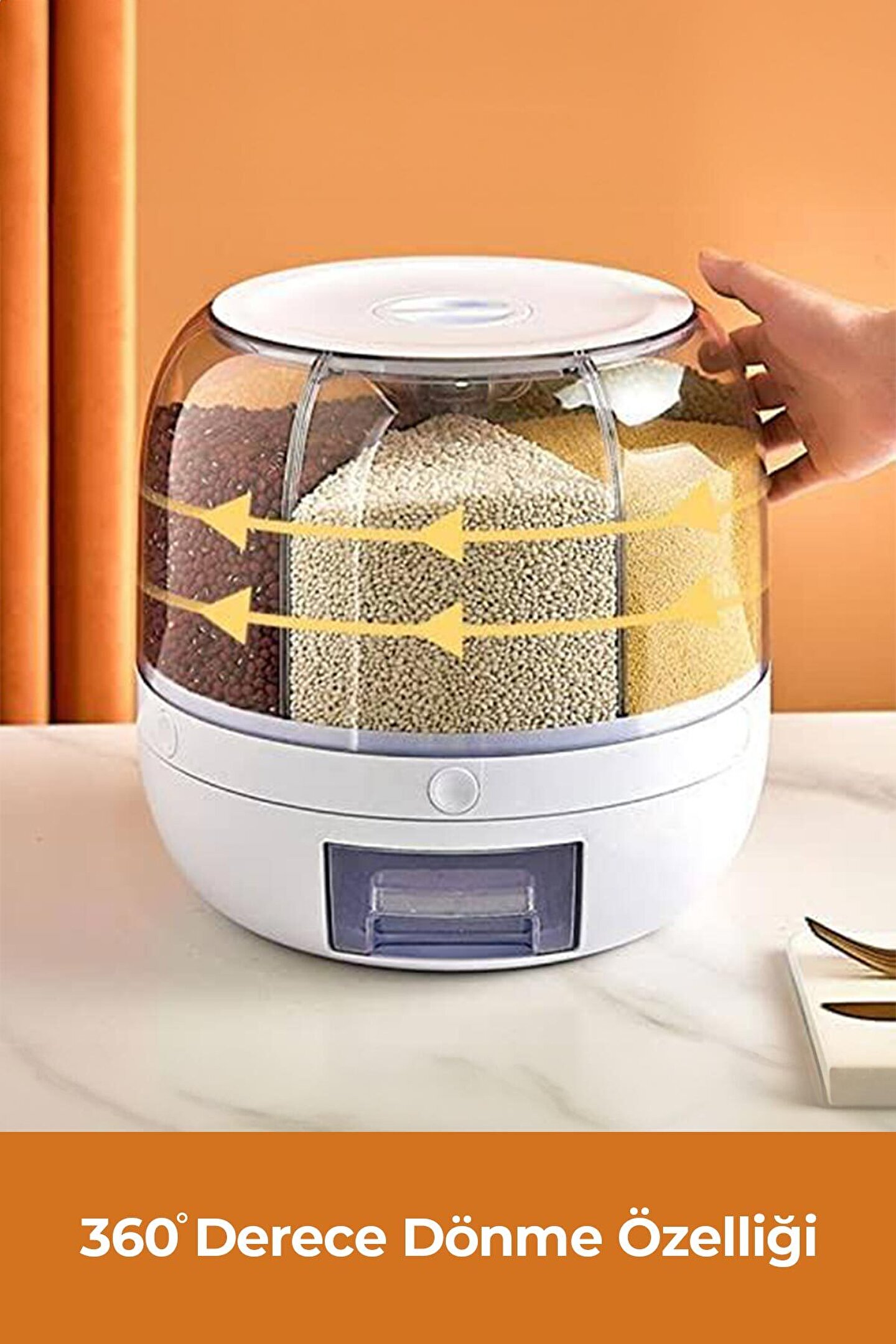 İKÇ 360° Dönebilen Kuru Gıda Ve Bakliyat Organizeri 6 Bölmeli Hava Geçirmez Saklama Kabı 6 Lt