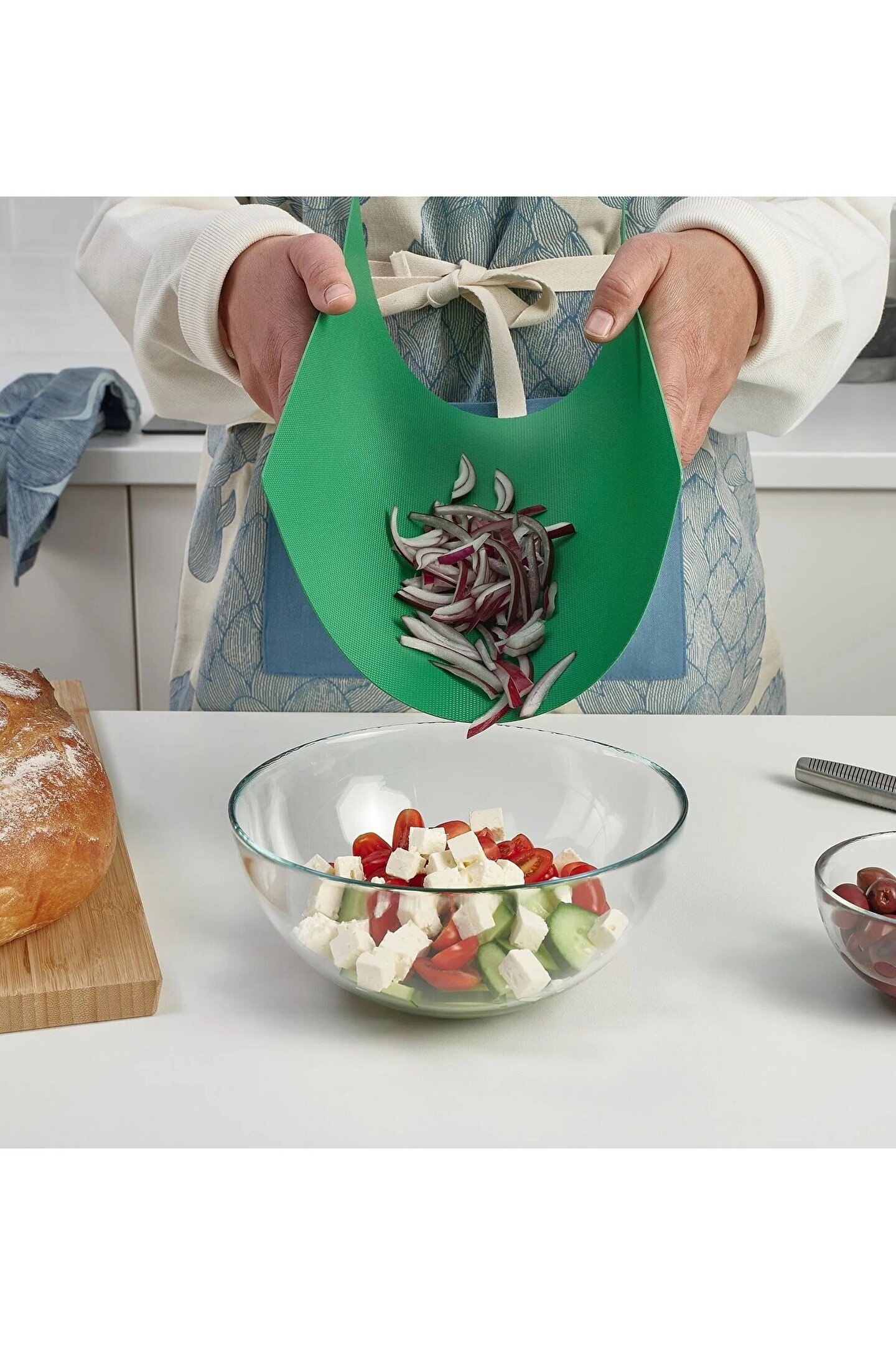 Uzunluk: 28 cm Genişlik: 36 cm Kalınlık: 1 mm Paket miktarı: 2 adet Bu 2 bükülebilir kesme tahtası, alttaki yüzeyleri bıçaklardan korur ve başka şekillerde de faydalıdır.; Doğranmış yiyecekleri tam olarak istediğiniz yere kaydırmanıza yardımcı olurlar.; Doğrama tahtasının esnekliği sayesinde doğranmış yiyecekleri dökmeden kolayca başka bir yere aktarabilirsiniz.; Alttaki pürüzsüz yüzey kaydırmaz özelliğe sahip olduğundan doğrama tahtasını kullanırken tezgah üzerinde iyi bir kavrama sağlar.; Sadece elde yıkanır.; Malzeme Sentetik kauçuk