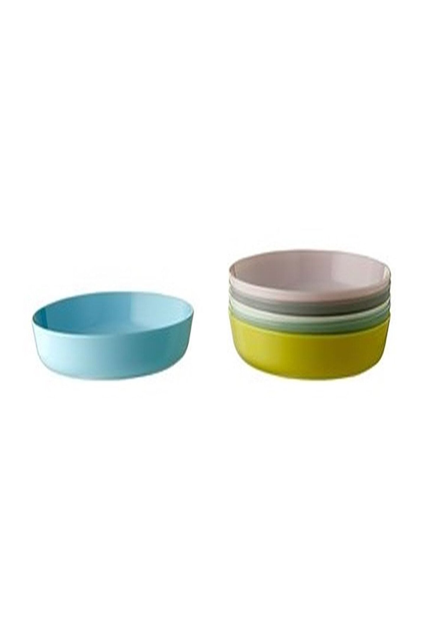 Plastik Kalas Tabak Seti Pastel Tonlar 6 Adet Çukur Tabak Modern BPA Free 6 Parça Sarı Yuvarlak 19