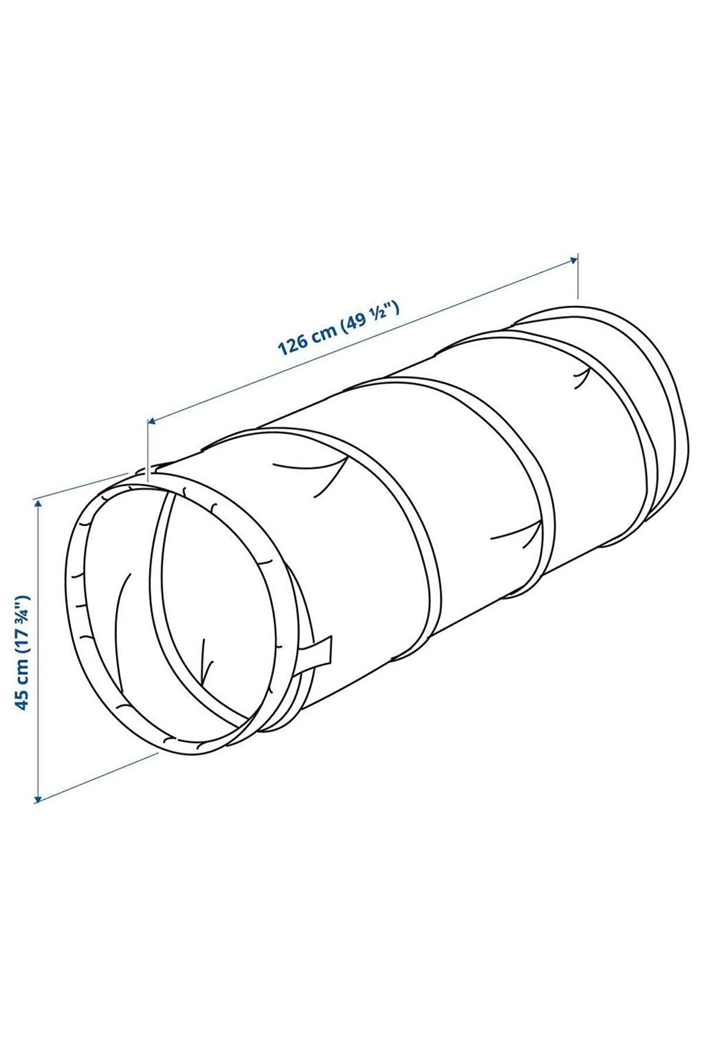 Tünelin içinde saklanmak ve diğer ucunda ne beklediğini keşfetmek heyecan verici bir maceradır.; ; Anne veya babadan daha hızlı sürünerek onları geçebilirsin - onlar her zaman ortada bir yere takılıp kalacaktır.; ; Montaj gerekmez,kullanması kolay.; ; Kullanılmadığında yer kazanmak için bastırarak katlanır.; ; Dokun ve kapat bağlantıları, tüneli saklarken bir arada tutar ve birkaç tüneli bağlamak için de kullanılabilir.; ; Fiziksel olarak aktif olmak, çocuğunuzun yaşam için sağlıklı bir alışkanlık oluştururken motor becerilerini ve koordinasyonunu geliştirmesine yardımcı olur.; ; Çocuklarla işbirliği içinde, düşünce ve fikirlerini ifade ettikleri eğlenceli oturumlarda tasarlandı.; ; Onların görüşleri bizim için çok önemli ve bu sayede ürünlerimizi daha iyi tasarlıyoruz.; ; Nihayetinde uzman olan onlar.; ; 18 aydan büyük çocuklar için tavsiye edilmiştir.; ; Bu ürün CE işareti taşımaktadır.; ; DVÄRGMÅS çocuk çadırı ile tamamlanabilir.; ; Bakım Talimatları Elde yıkanır, maks 40°C.; ; Çamaşır suyu kullanılmaz.; ; Makinede kurutulmaz.; ; Ütülenmez.; ; Kuru temizleme yapılmaz.; ; Malzeme Kumaş:%100 polyester (en az %90'ı geri dönüştürülmüştür) Tüp:Polietilen plastik Dolgu:Polietilen sünger Teyp:%100 naylon Ebatlar Çap: 45 cm Uzunluk: 126 cm Ağırlık: 1.03 kg;