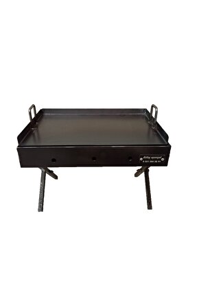 Dayanıklı sac malzeme kullanımı sayesinde uzun ömürlü ve sağlam bir yapı sunar; Kömürlü tasarımı ile kolayca yakıt ikmali yapmanızı sağlar ve pişirme işlemlerinizi kesintisiz sürdürmenize olanak tanır; 30x45 cm boyutlarındaki pleyt tava, geniş yüzey alanı ile büyük porsiyonlar hazırlamanızı mümkün kılar; Katlanabilir ayakları sayesinde taşıması kolaydır ve depolama alanından tasarruf etmenizi sağlar;
