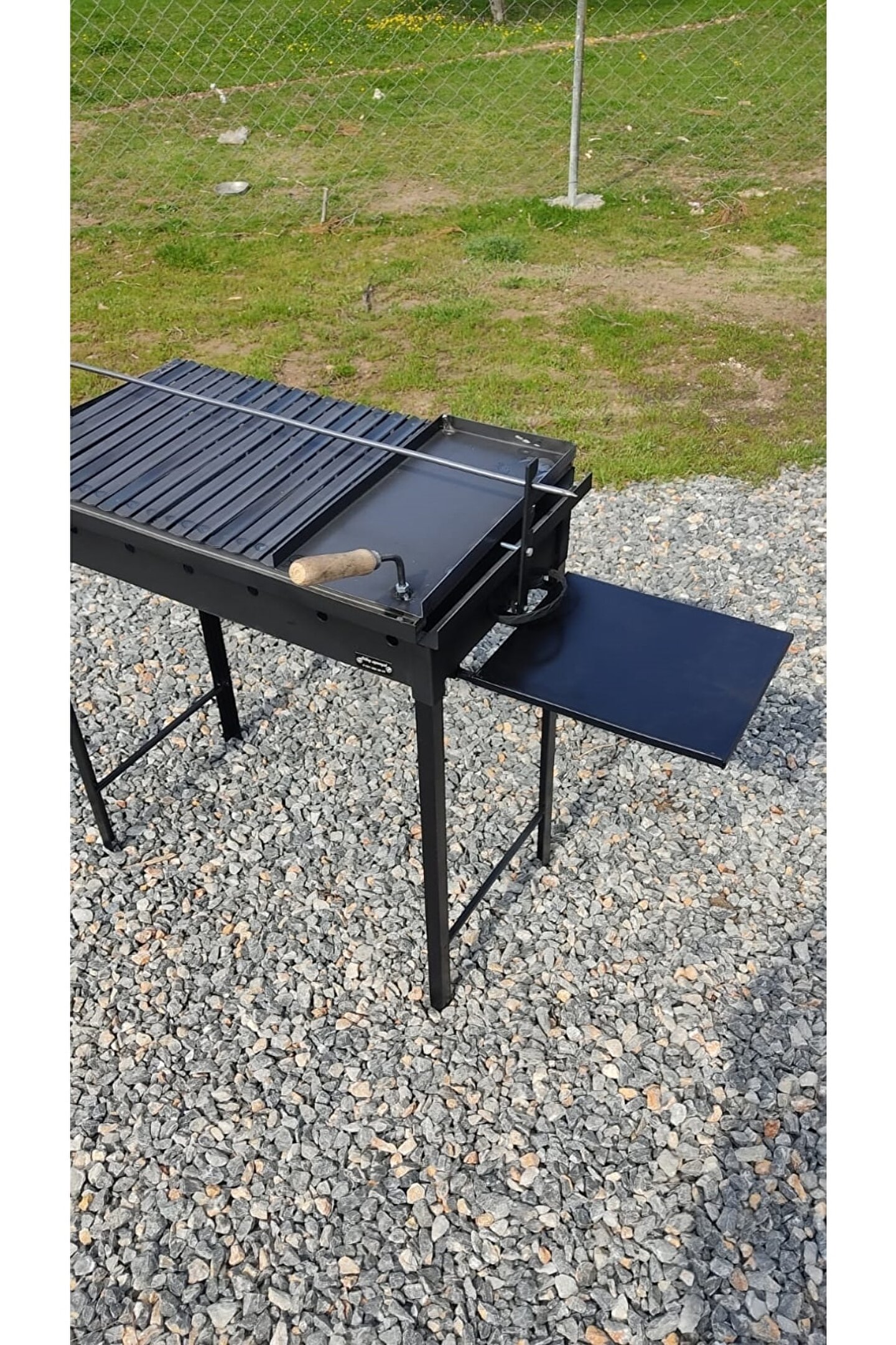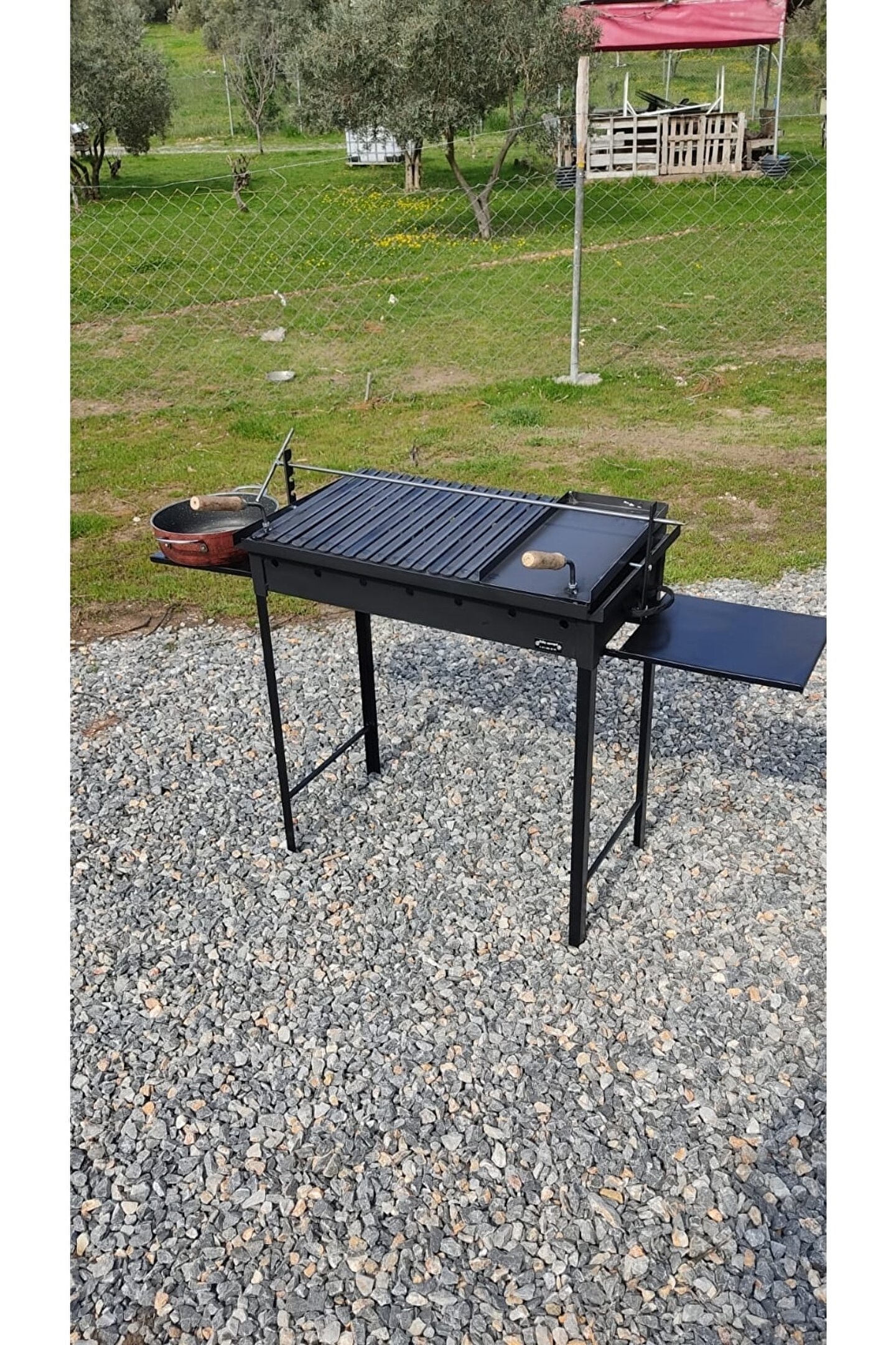 Dayanıklı sac malzeme kullanımı sayesinde uzun ömürlü ve sağlam bir yapı sunar; Kömürlü tasarımı ile kolayca ateş yakma ve kontrol etme imkanı sağlar, böylece yemeklerinizi dilediğiniz sıcaklıkta pişirebilirsiniz; 40x70 cm boyutlarındaki geniş yüzeyi, geniş aileler ve arkadaş grupları için idealdir; aynı anda birçok yemeği pişirme olanağı tanır; Oluklu ızgara yapısı sayesinde etlerinizi eşit şekilde pişirirken, dökülme ve yanma riskini azaltır; Pleyt tava ile birlikte gelen bu mangal seti, çeşitli yemeklerinizi pişirme esnekliği sunar ve mutfakta çok yönlülük sağlar;