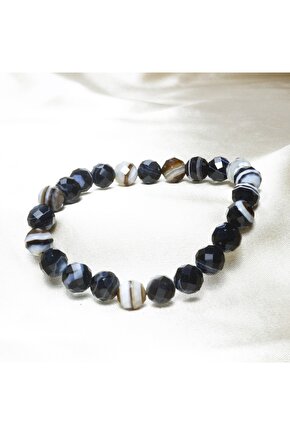 "Zarafetin ve Doğanın Uyumu: Akik Taşı Bileklik" Doğanın tılsımını bileğinizde hissetmek için mükemmel bir fırsat sunuyoruz: Akik Taşı Bileklik. ; Bu benzersiz bileklik, Siyah Akik Taşı elmas kesimli doğal desenleriyle sizi büyüleyecek ve her adımda doğanın güzelliğini taşımanıza yardımcı olacak. ; Akik Taşı, doğanın güzelliklerini en saf haliyle yansıtan bir taştır ve bu bilezikte zarif bir şekilde işlenmiştir. ; Her parça, özenle seçilmiş ve elmas kesimli detaylarla süslenmiştir. ; Bu sayede hem modern hem de doğal bir tarzı bir araya getiriyoruz. ; Akik Taşı Bileklik, her yaş ve tarza uygun bir aksesuar olarak tasarlandı. ; Gündelik giyimle mükemmel bir uyum sağlarken özel günlerde de sizi şıklığınızla ön plana çıkarır. ; Doğal taşın enerjisiyle ruhunuzu canlandırın. ; Ürünümüz, dayanıklılığı ve estetiği bir araya getiriyor. ; Kaliteli malzemelerle üretilmiş ve uzun ömürlüdür. ; Bu bileklik, size yıllarca eşlik edecek bir miras parçası olabilir. ; Akik Taşı Bileklik, güzellik ve şıklığı bir araya getiriyor. ; Hemen satın alın ve doğanın büyüleyici güzelliğini bileğinizde taşıyın. ; Akik Taşı Bileklik için en iyi seçeneklerden birini kaçırmayın. ; Bileklik tane ebatları 8 mm;