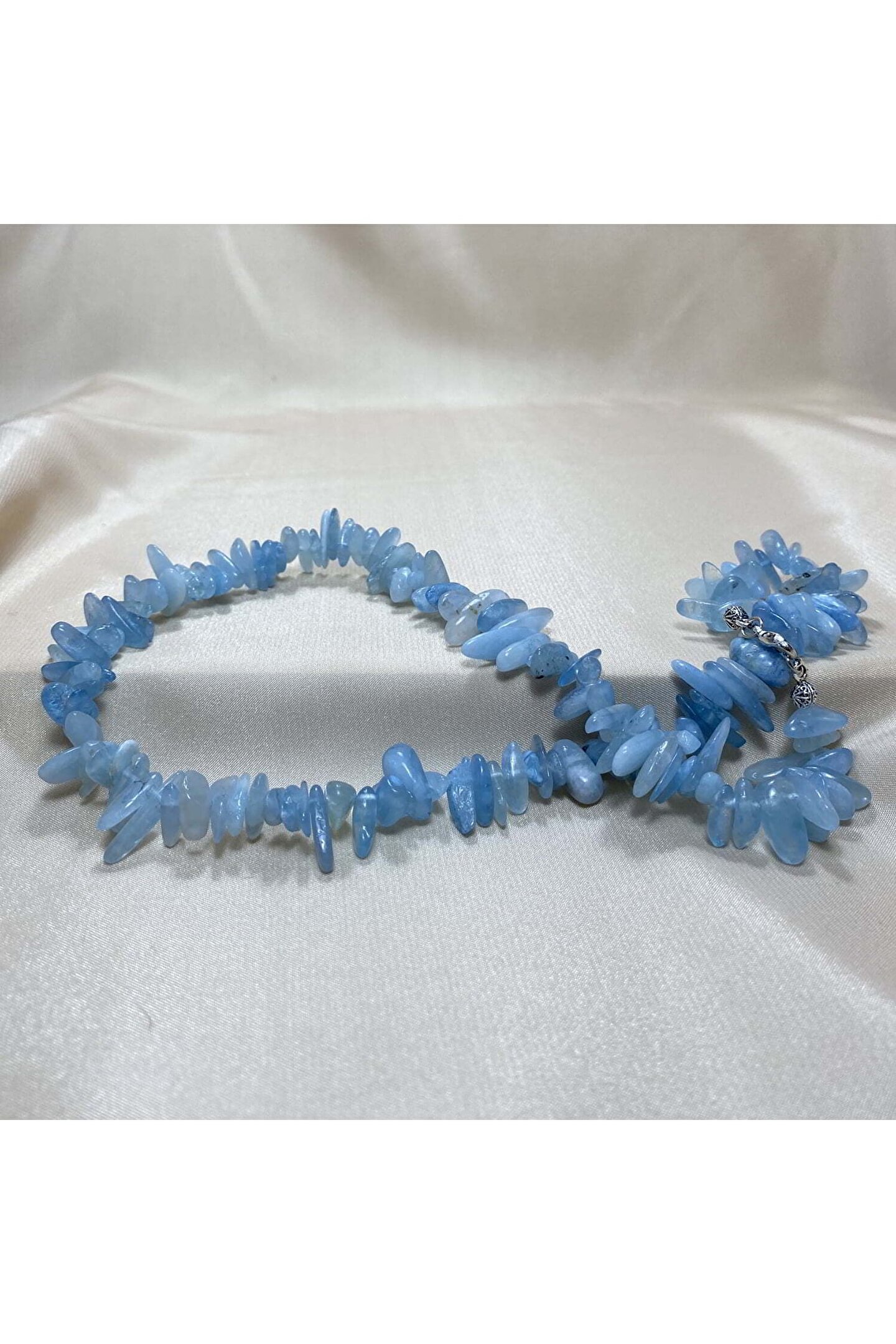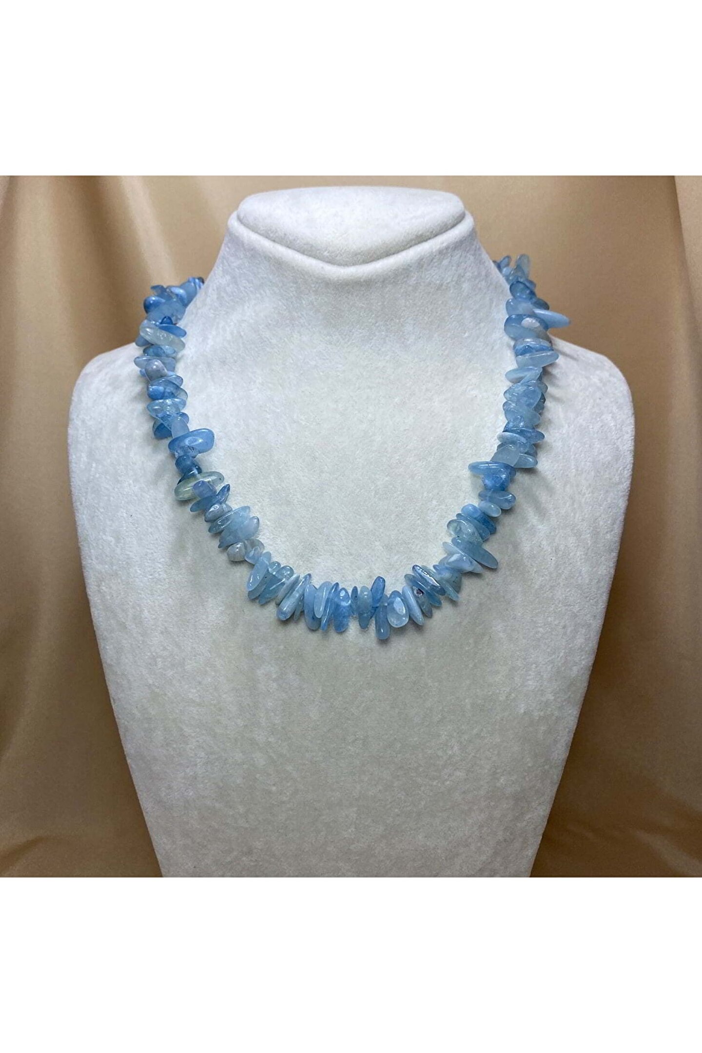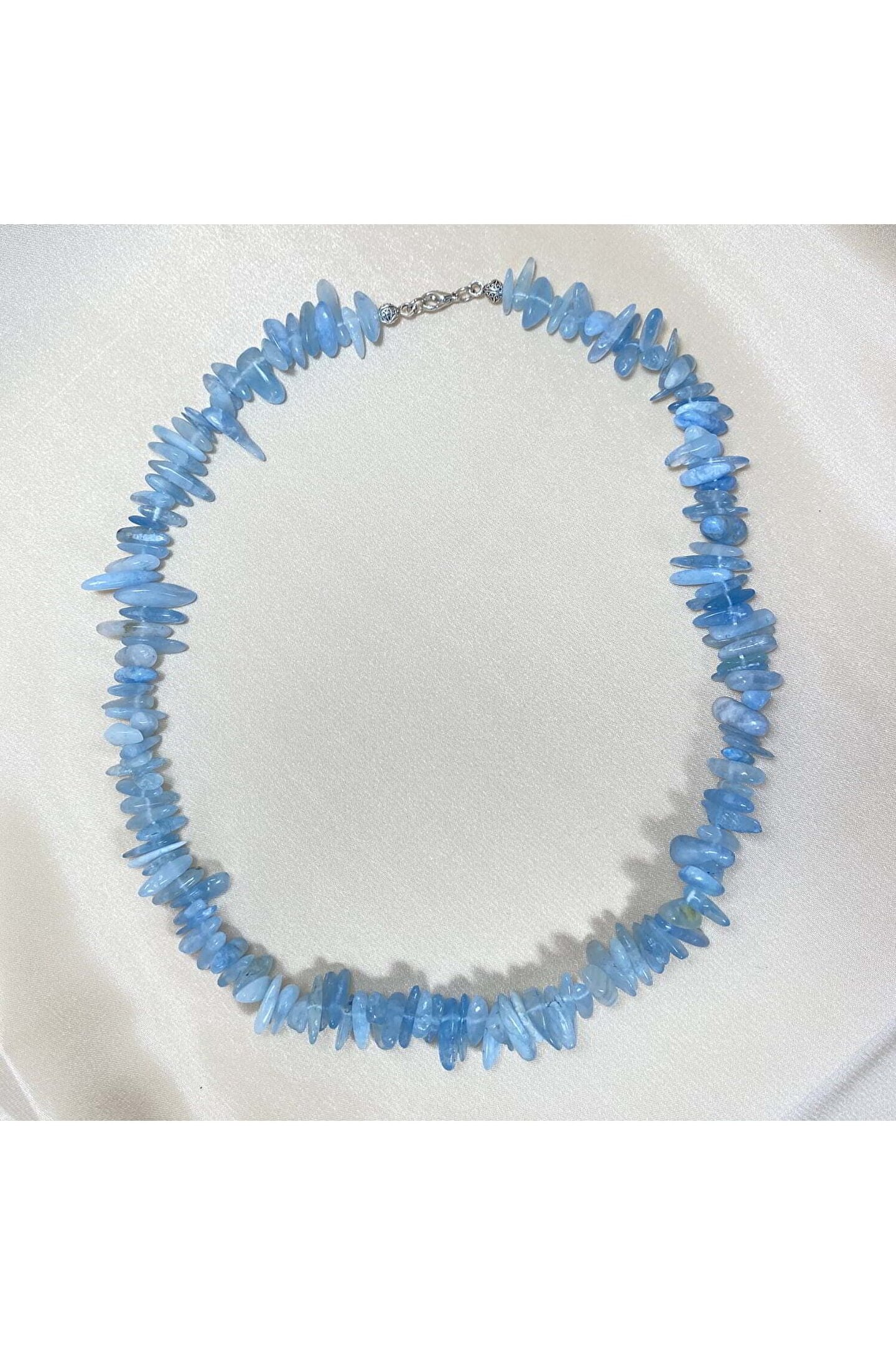 Doğal taş kullanımı, her bir kolyenin benzersiz ve otantik bir görünüm kazanmasını sağlar; Akuamarin taşı, hem şıklığı hem de zarafeti temsil eder; bu da onu özel günlerinizde veya günlük kullanım için ideal bir aksesuar haline getirir; Kolyenin kırık taş detayı, modern ve trend bir stil sunarak dikkat çekici bir görünüm sağlar; Doğal taşların sıcaklığını ve estetiğini yansıtan bu kolye, her tür kıyafetle uyum sağlayarak stilinizi tamamlar;