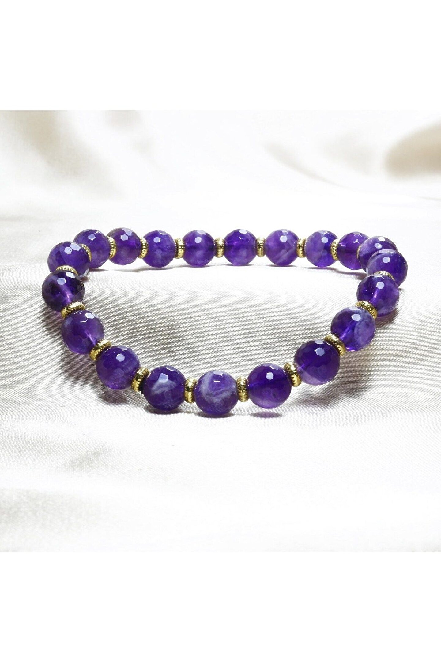 ILGIN DOĞAL TAŞ TAKI Ametist Taşı Faset Kesimli Bileklik | Gerçek Altın Kaplama Detaylı