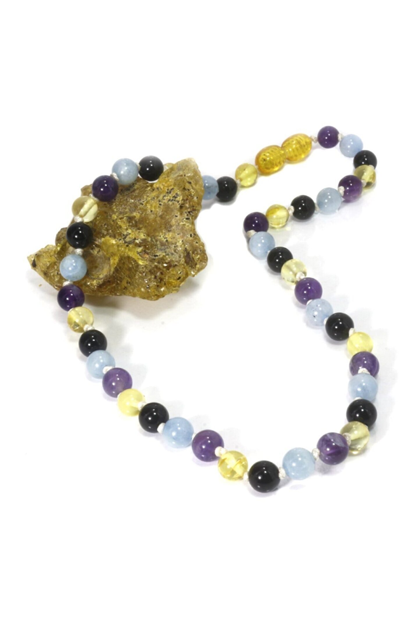 Bebeklerin hassas cildine uygun, doğal taş malzemeden üretilmiştir; Özel tasarımıyla bebeklerinize zarif bir dokunuş ekler; Kehribarın sıcak ve doğal tonları, minik eller için ideal bir aksesuar seçeneği sunar; Her bir damla kehribar taşı, benzersiz desenleriyle göz alıcı bir görünüm sağlar;