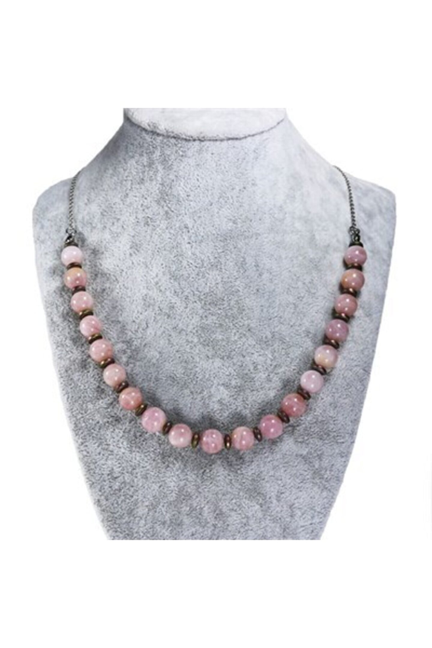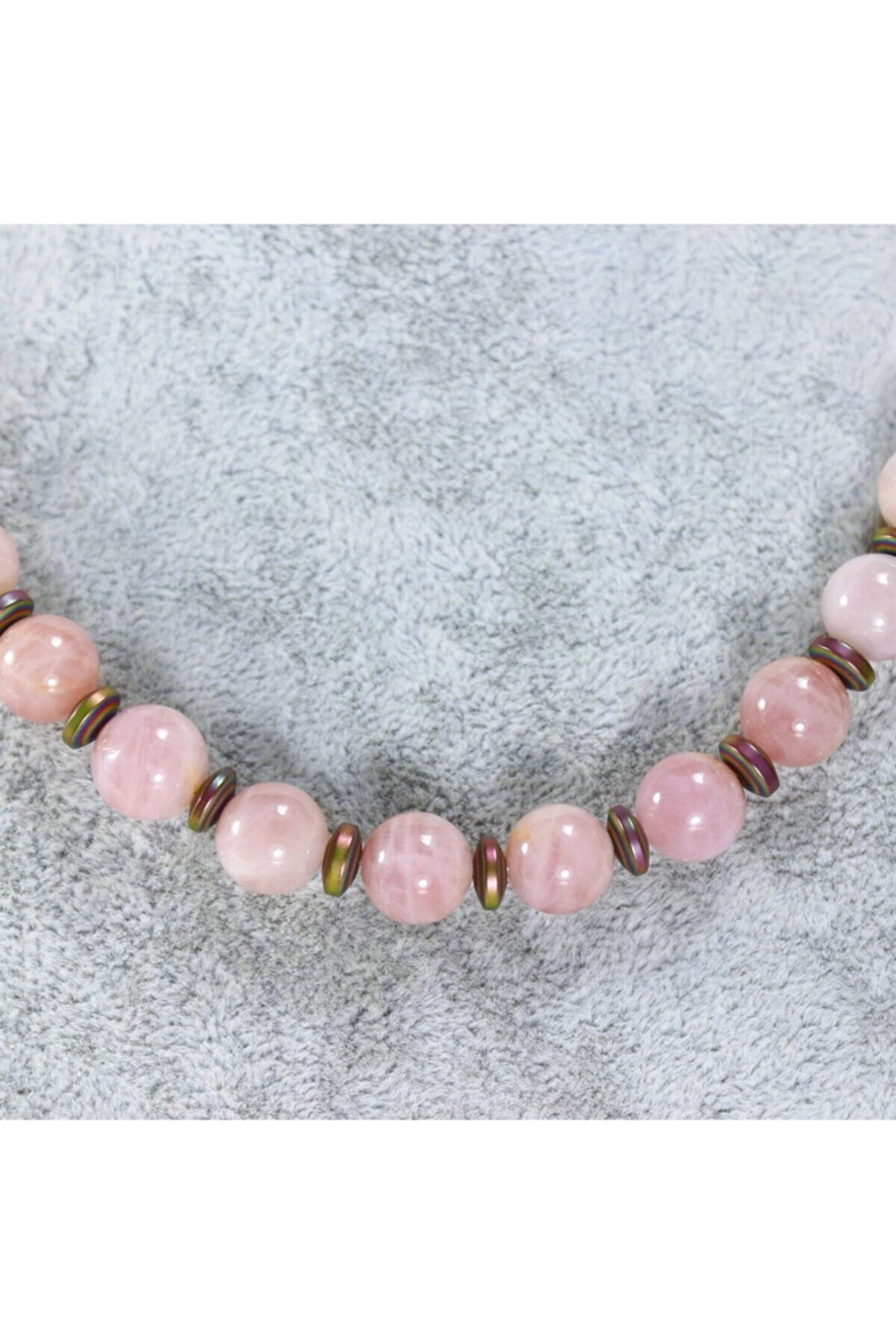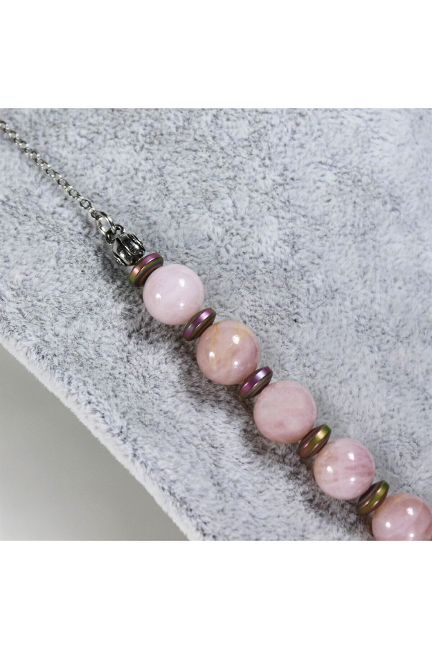 ILGIN DOĞAL TAŞ TAKI Kadın Pembe Kuvars - Hematit Doğal Taş Kolye