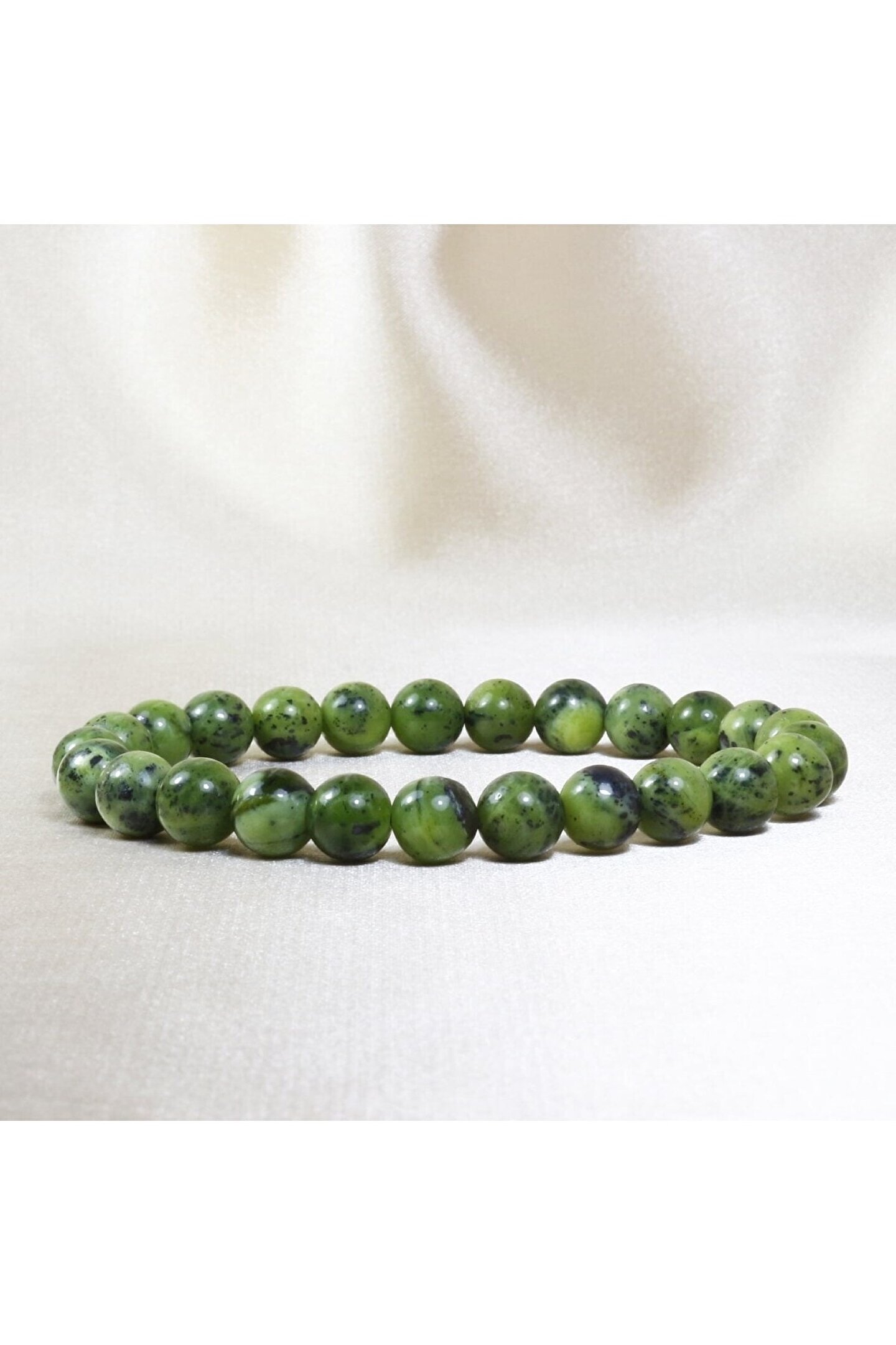 Kanada Yeşim Taşı Bileklik, doğal taş özellikleri bakımından Şans Taşı ve Mutluluk Taşı olarak da bilinir. ; Kanada'nın doğal güzelliklerinden ilham alan bu eşsiz Kanada Yeşim Taşı Bileklik, doğal taşların zarafetini ve şifalı özelliklerini taşıyor. ; Her bir taş, doğanın gizemli dokusunu yansıtırken, taşın benzersiz renk ve desenleri her bilekliği özel kılıyor. ; Kanada Yeşim Taşı, enerjiyi dengeleme ve sakinlik sağlama konusunda ünlüdür, bu nedenle bu bileklik, günlük hayatın stresinden uzaklaşmanızı ve iç huzuru bulmanızı destekler. ; El yapımı özenle işlenmiş bileklik, dayanıklılığını ve kalıcılığını garanti ederken, şıklığından ödün vermez. ; Hem kadınlar hem de erkekler için mükemmel bir aksesuardır ve her stil ve giyim tarzına uyum sağlar. ; Doğal taş severler ve enerji çalışmalarına ilgi duyanlar için vazgeçilmez bir seçim olan Kanada Yeşim Taşı Bileklik, özel bir hediye veya kendinizi şımartmak için mükemmel bir seçenektir. ; Doğanın gücünü bileğinizde taşıyın ve içsel dengeye adım atın. ; Bileklik tane ebatları 8 mm;